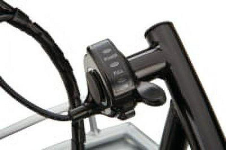 – Powerful high-torque. chain-driven motor delivers speeds up to 12 mph (19 km/h) and a thumb trigger throttle allows the rider to choose between varied speeds levels.