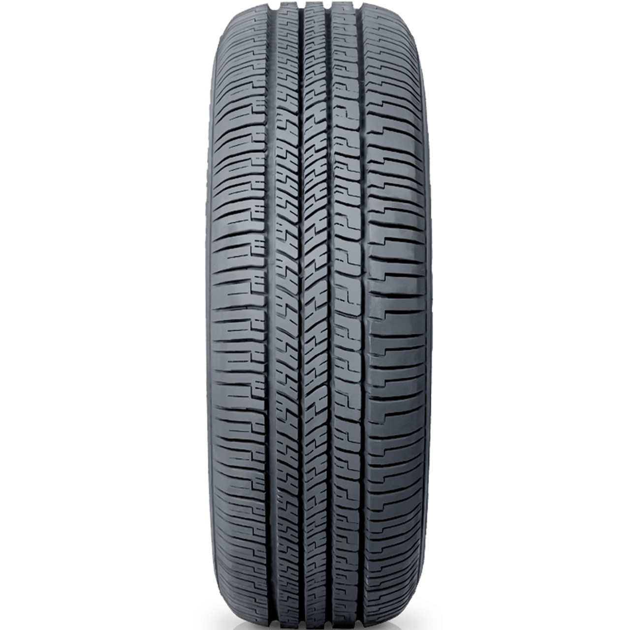All season traction is promoted with this model. It utilizes the asymmetric tread design and all season compound. in order to optimize the year round application. The tread elements firmly grip the road surface with extra biting edges. upgrading the dry. wet. and winter weather traction. Additionally. the rubber compound keeps the rubber flexibility during the performance. Hydroplaning is avoided with the circumferential grooves. as they disperse water and slush from below the footprint.