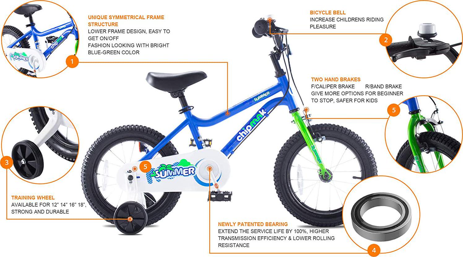 1. Accessories: This sporty bike for boys and girls comes with a bell. basket. training wheels for 12-14-16-18 inch. kickstand for 16-18 inch. Quick release of seat post makes it easy to adjust the height of the seat.