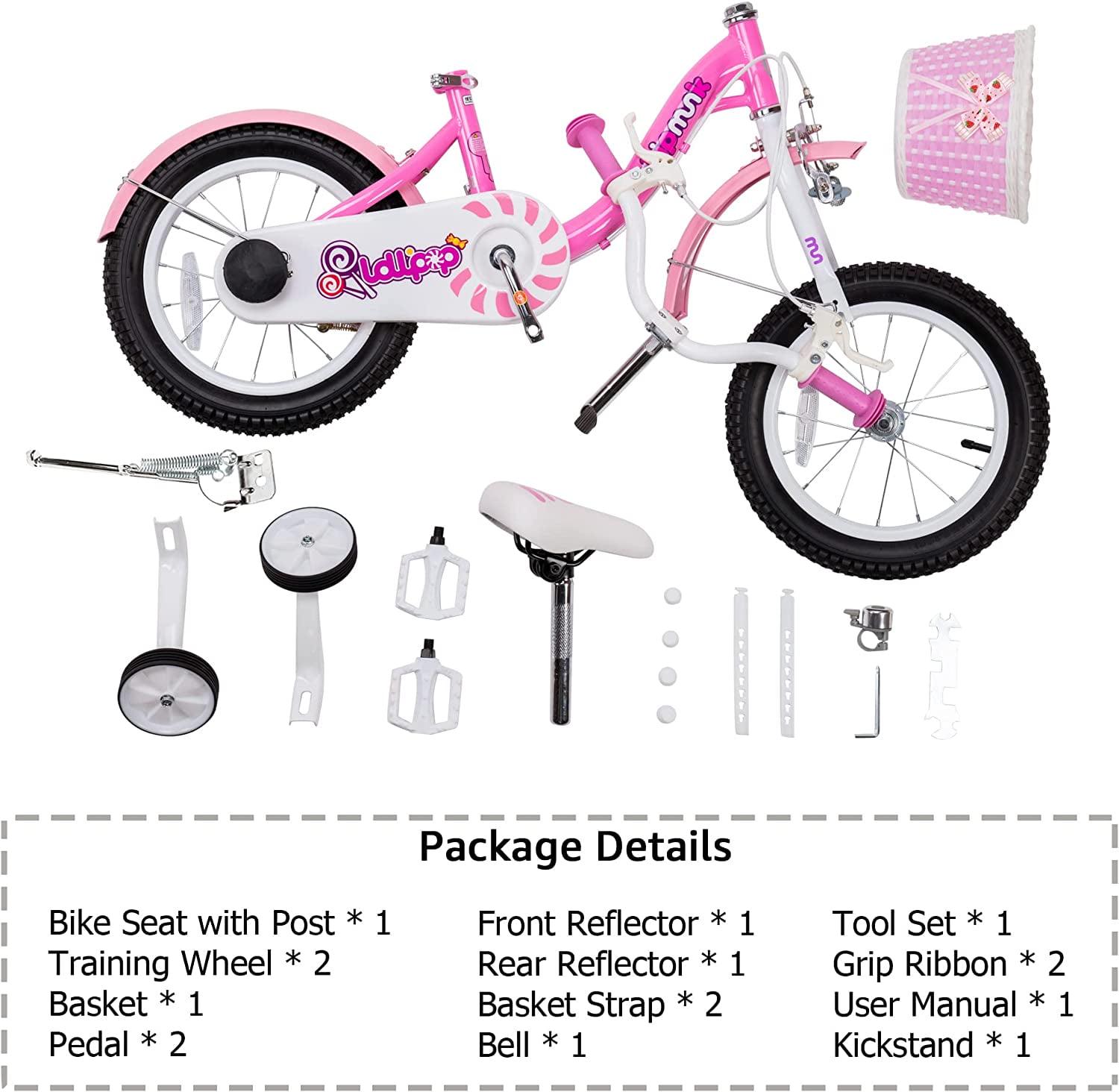 SPECIFICALLY FOR GIRLS. Royalbaby girls bike has a low geometry delicate curve frame. easy for kids to hop on. Cute bike in lovely colors and details. dual brakes (pedal and hand). detachable height-adjustable wider training wheels for excellent steadiness. a bell. and a basket for her dolls. It’s a great first bike with all the bells and whistles a child will need to learn and get comfortable with biking.