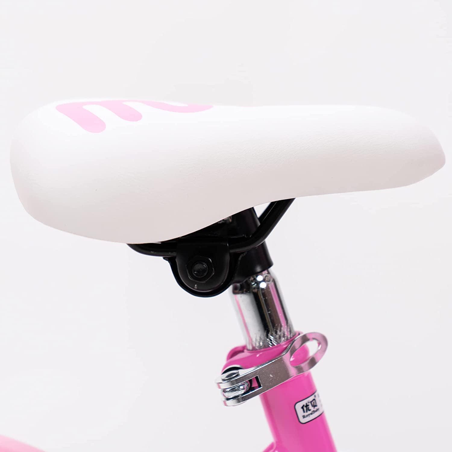 The RoyalBaby 14″ Chipmunk Girls Bike features a one-tube and elegant curved down design. With a low standover height. thanks to the curved down one-tube design. getting on and off the bike is enjoyable. This ergonomic design ensures more effortless and comfy riding. which benefits beginners and pros.