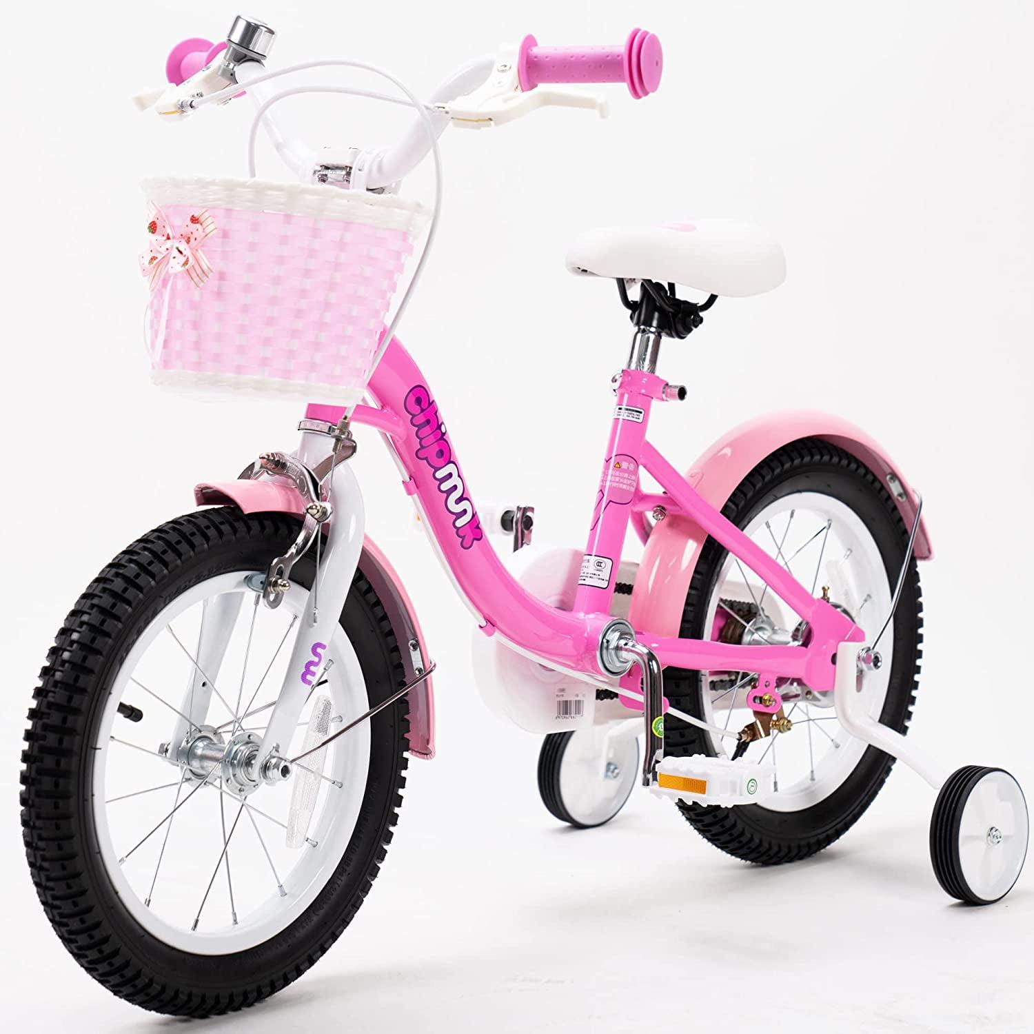RoyalBaby Chipmunk Girls Kids Bike Bicycle with Basket Training Wheels 14 Inch Lollipop Pink
