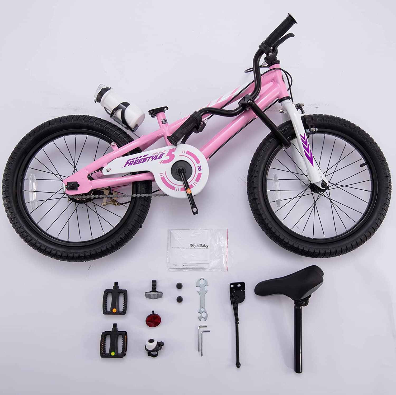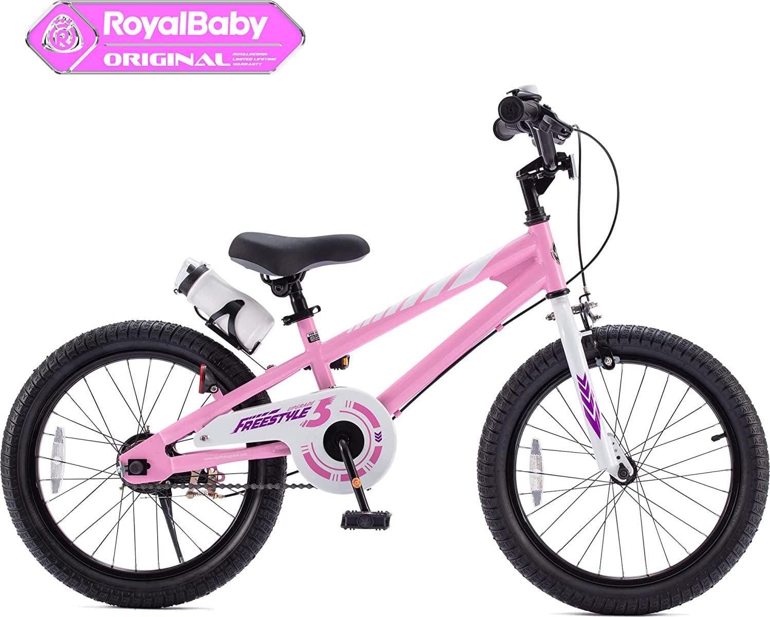 Royalbaby Freestyle 18 In. Pink Kids Bike Boys and Girls Bike with Training wheels and Water Bottle