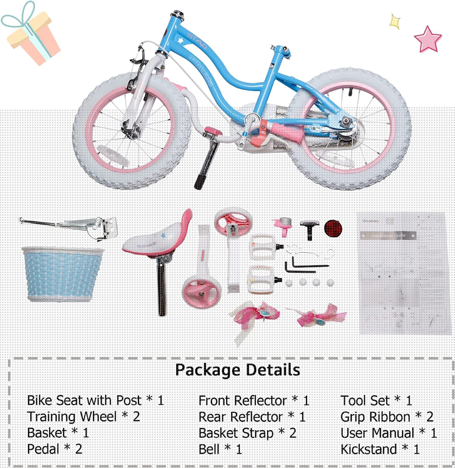 The RoyalBaby 16″ Stargirl features a fashionable design and classic color matching. The astonishing color contrast of the frame and fork makes it stand out. being the Star Girl of the crowd.
