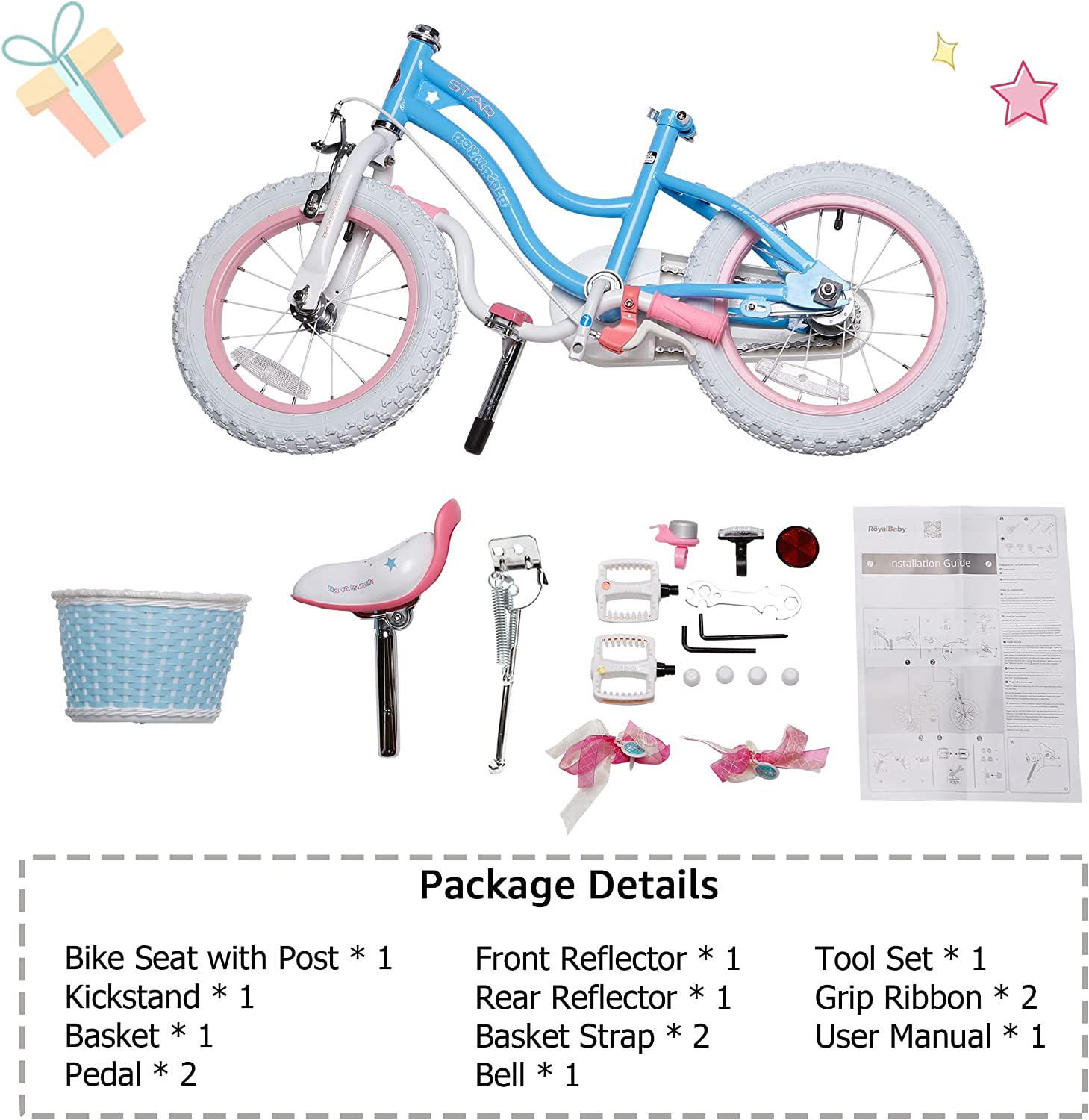• Royalbaby Girls Kids Bike Stargirl 18 In. Bicycle Basket Kickstand Blue Child - S Cycle