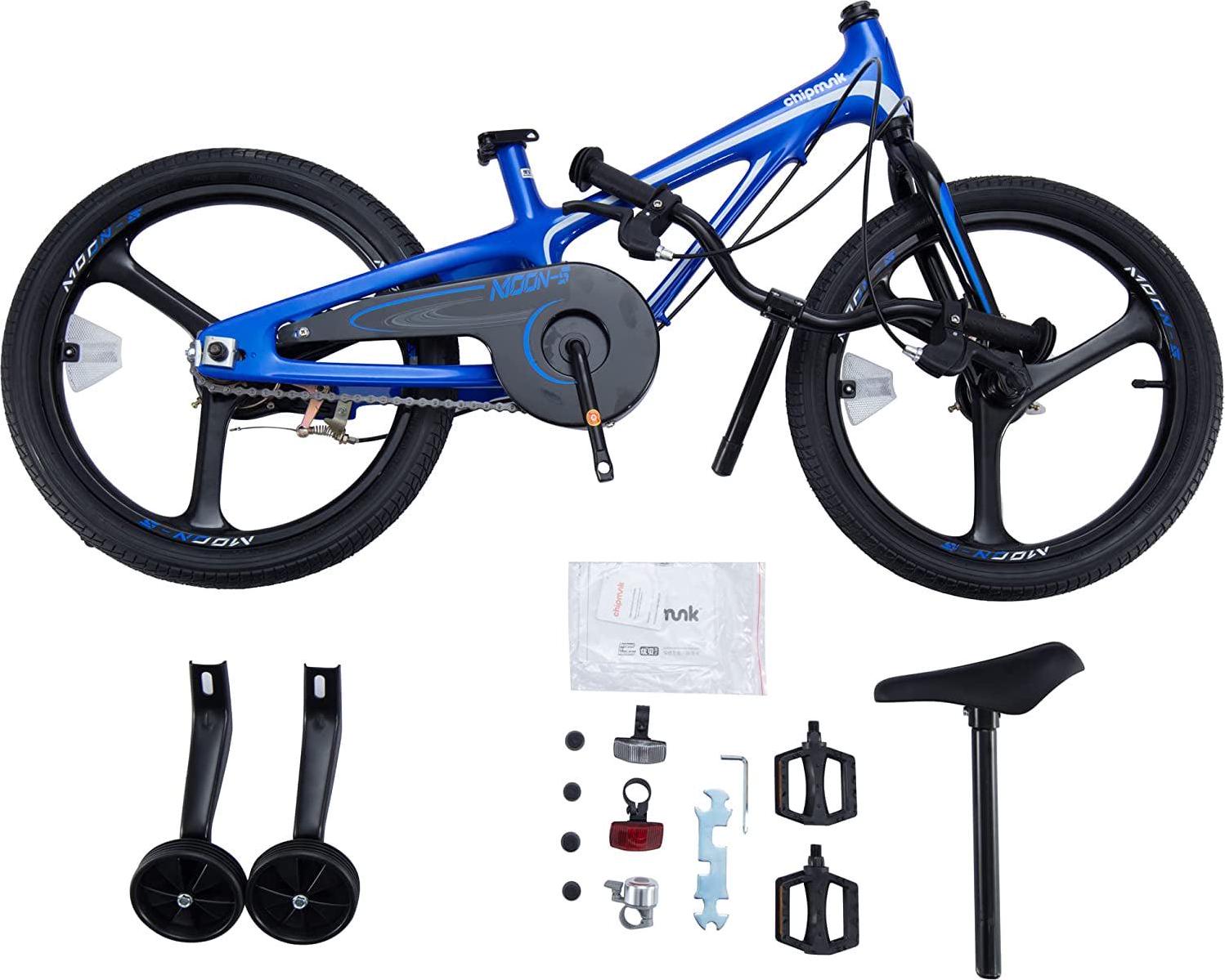 Let your little ones enjoy the outdoors and kindle their love for cycling with the RoyalBaby Moon-5 18-Inch Kids Bike with Kickstand. With a sleek design. this bike for boys and girls is a masterpiece that will capture your child’s adventurous heart. Alongside a robust. lightweight magnesium frame and extra-wide tires. this bike guarantees a secured journey for your little one on every adventure. bringing them back home sound and intact. This bike with training wheels features 14-inch tires that allow your child to learn and grow at their own pace. The dependable dual handbrake provides confident braking performance in various weather conditions for worry-free adventures outdoors. Meanwhile. the extra-wide tires deliver increased stability and traction. allowing young riders to confidently navigate different terrains while providing a smooth and comfortable ride for endless outdoor fun. This bike features a kickstand. RoyalBaby exclusive premium parts. and magnesium 1-piece rim. making it an exceptional all-in-one bike option. Watch your child soar to new heights. pedaling through your neighborhood with the RoyalBaby Moon-5 18-Inch Kids Bike.