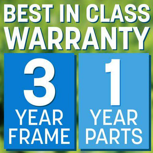Warranty: 3-year limited warranty on trampoline frame. 1-year limited warranty on other materials