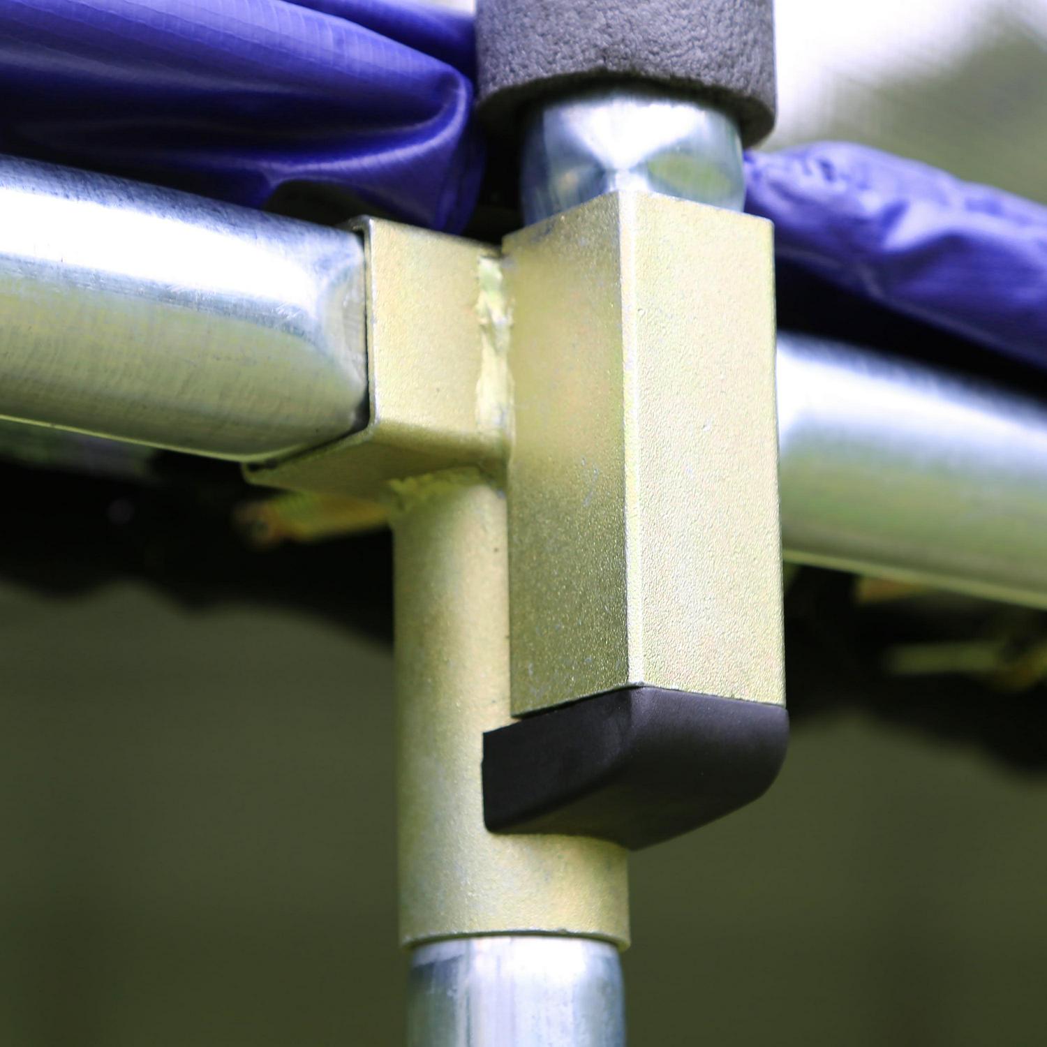 – All Skywalker Trampolines frames feature reinforced T-sockets at each leg and enclosure joint. increasing frame stability and preventing structural twisting. The T-sockets are made of rust-resistant galvanized steel. extending the life of your trampoline and making assembly easier.