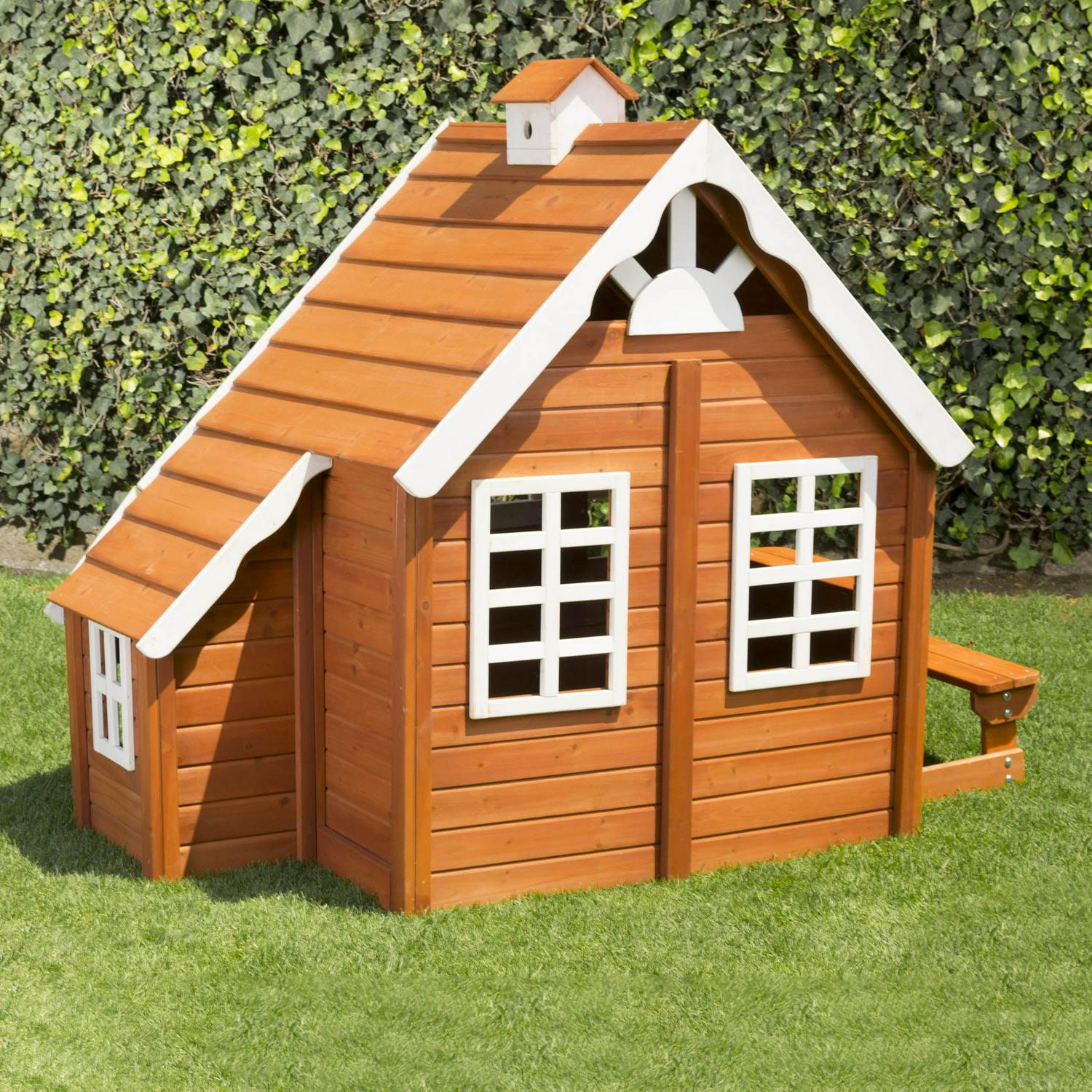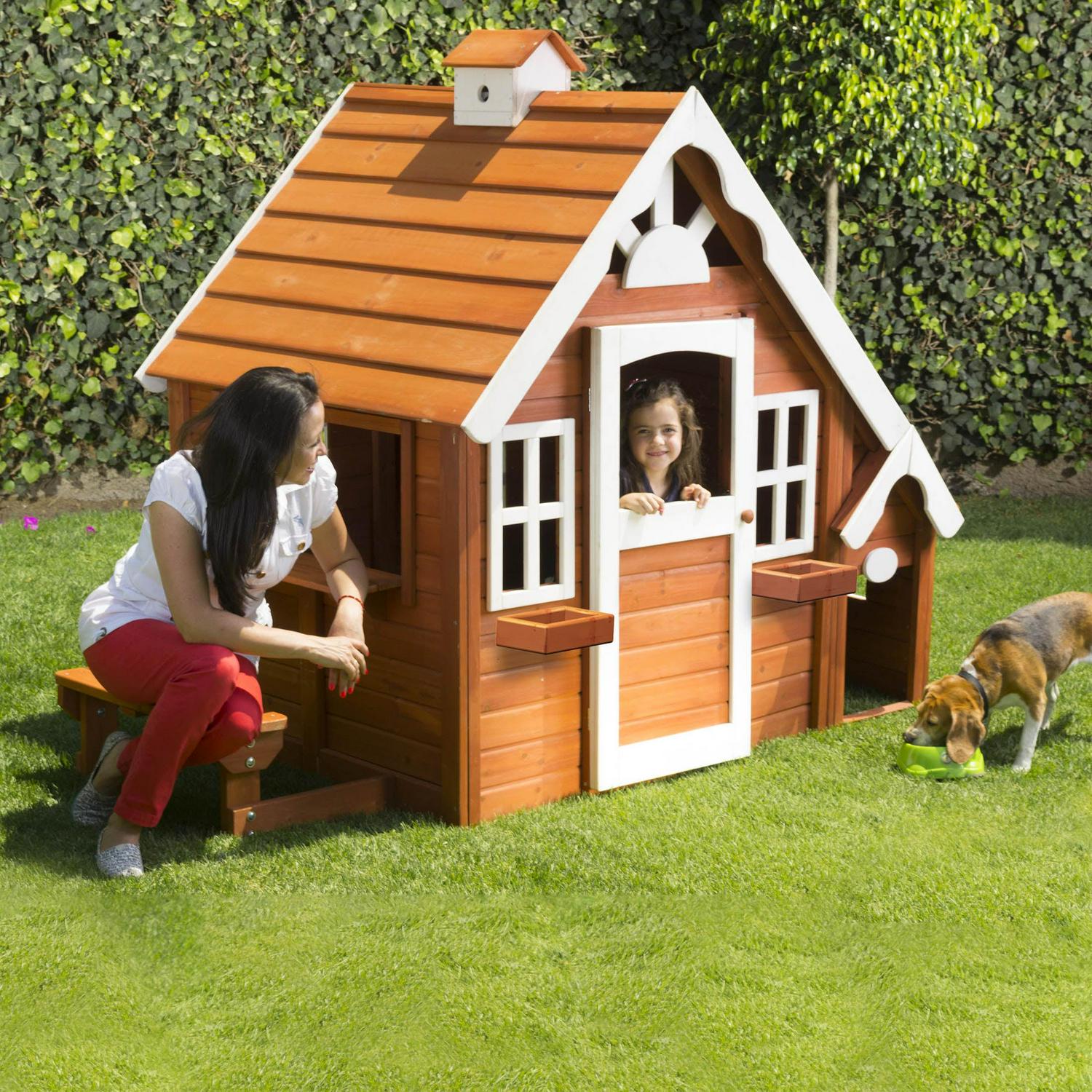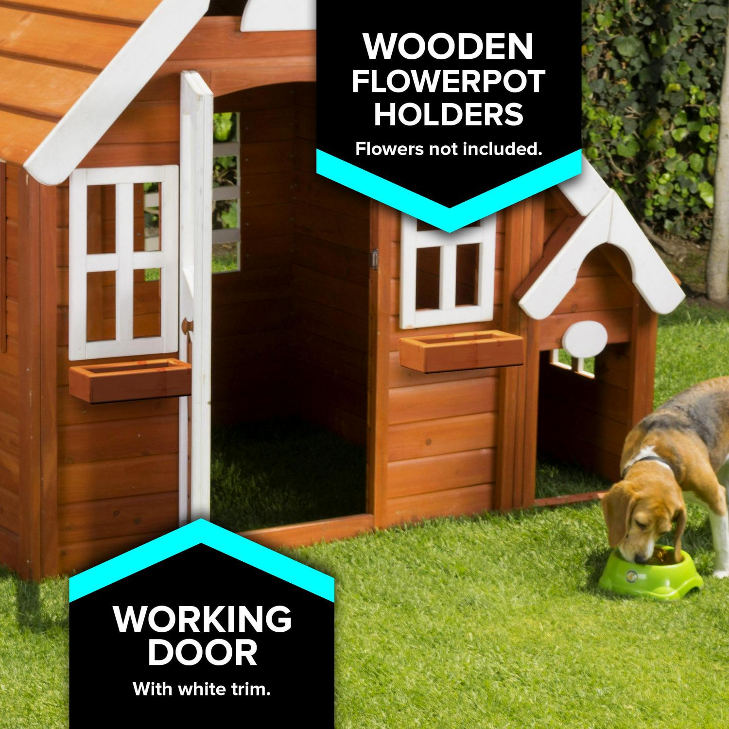 - Cozy playhouse with integrated doghouse