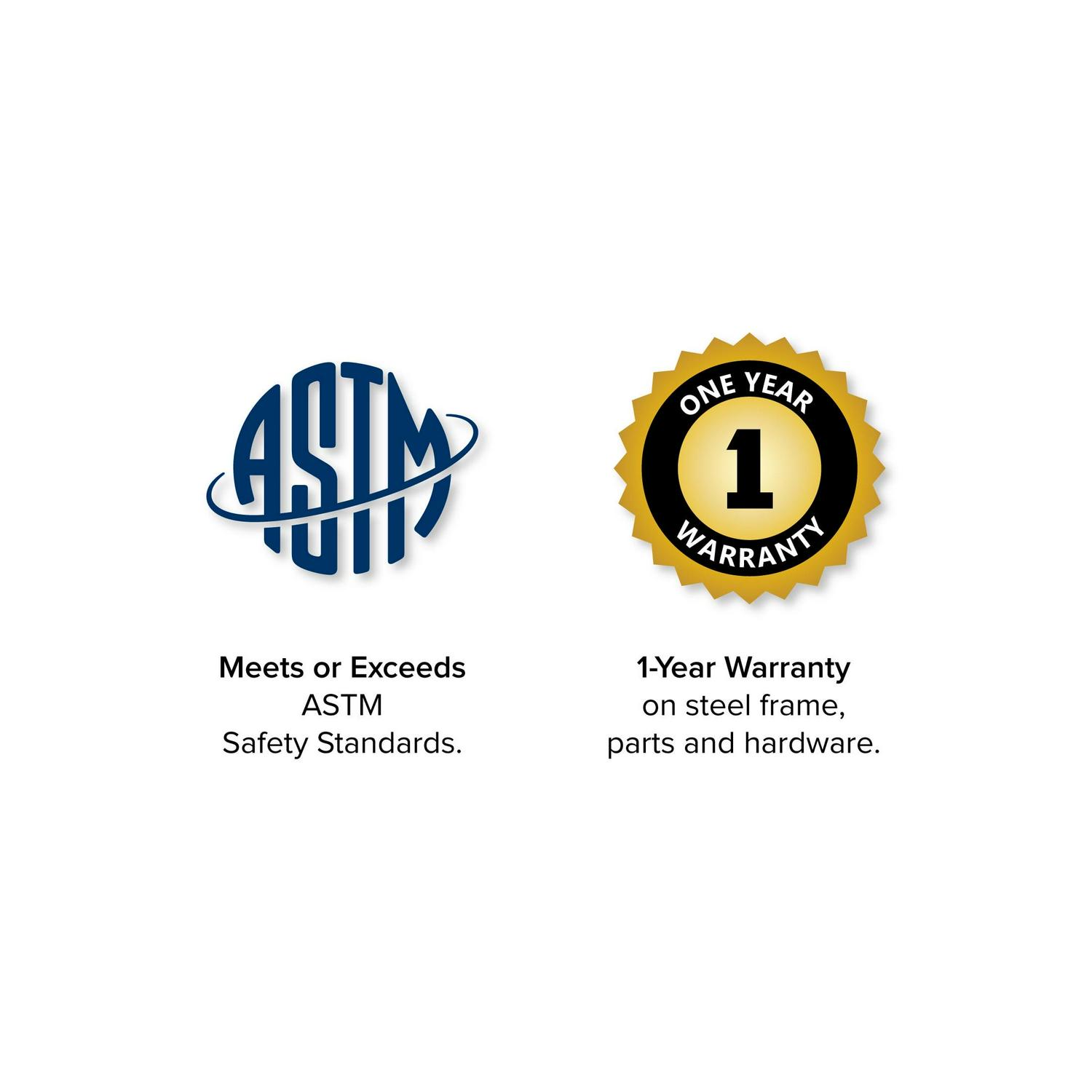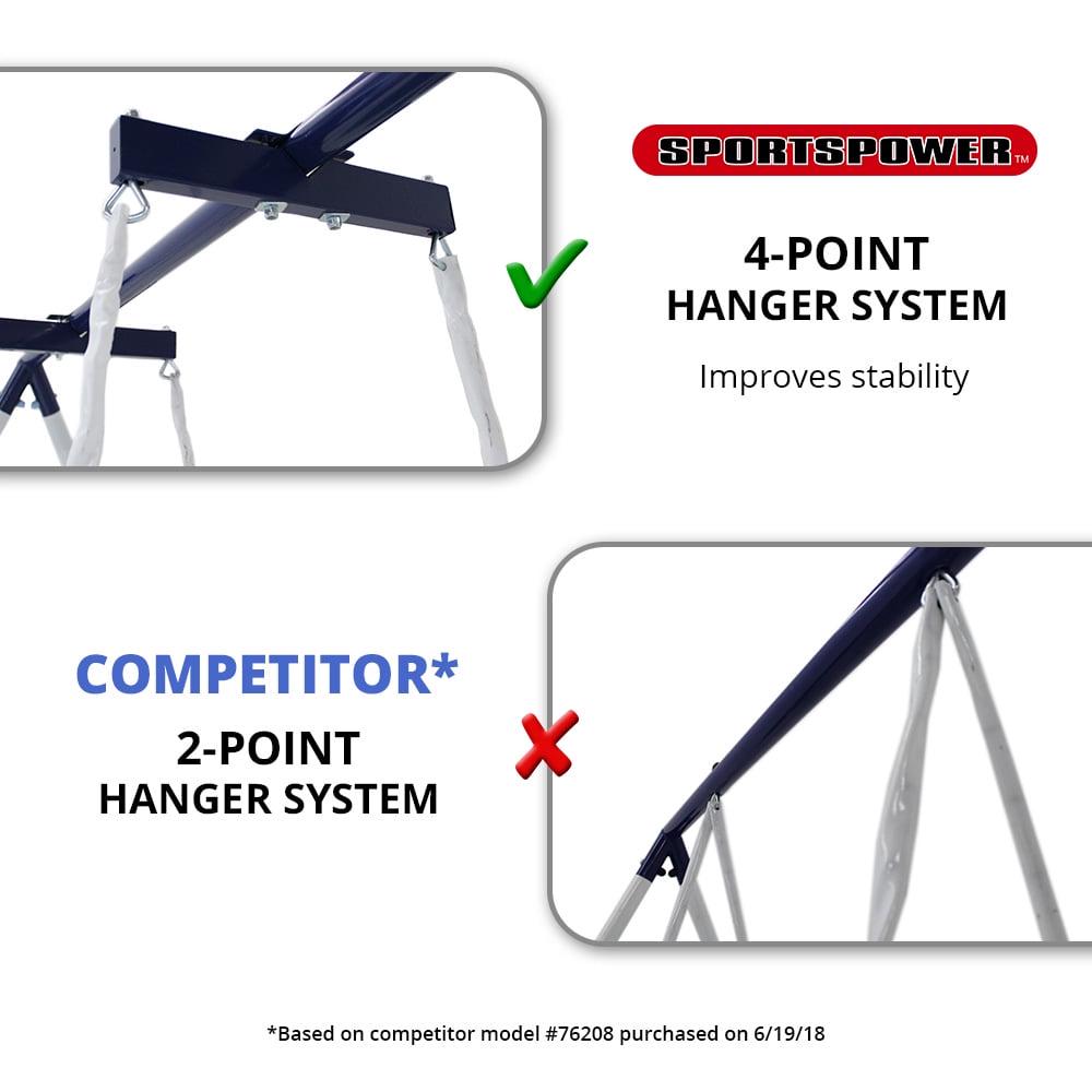 Fun times are had by all when you have the Sportspower Outdoor Rosemead Metal Swing and Slide Set in your backyard. Crafted with heavy-duty. powder-coated steel tubes for more durability. this swing set features two swings with safe vinyl covers to protect hands. The patented flying saucer swing with reinforced webbing holds up to two kids and keeps them safely inside the saucer. The saucer and glider use a four-point chain hanger design for better stability compared to common two-point chain systems. This swing set meets or exceeds all ASTM safety standards. Make great memories with family and friends when you have the Sportspower Outdoor Rosemead Metal Swing and Slide Set.
