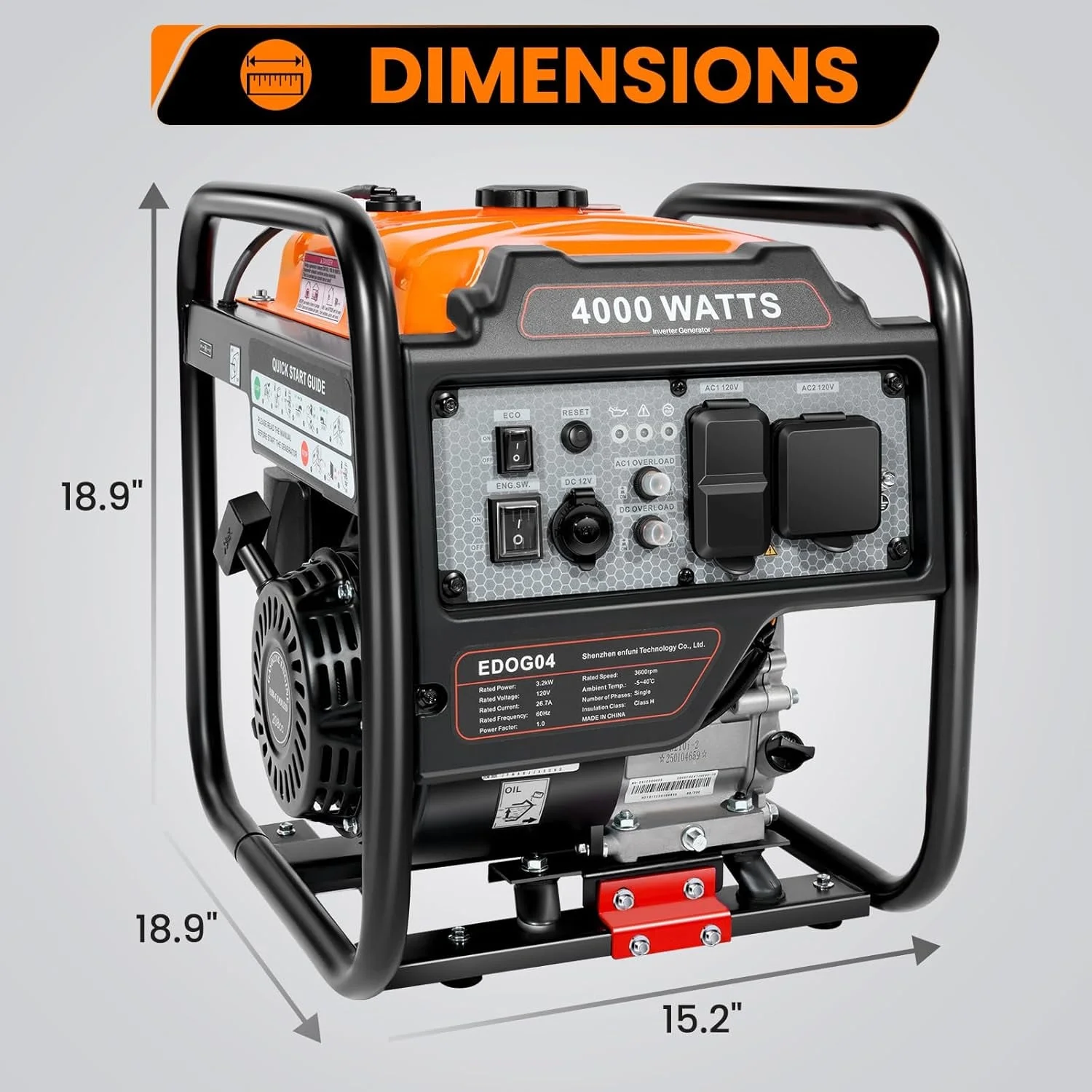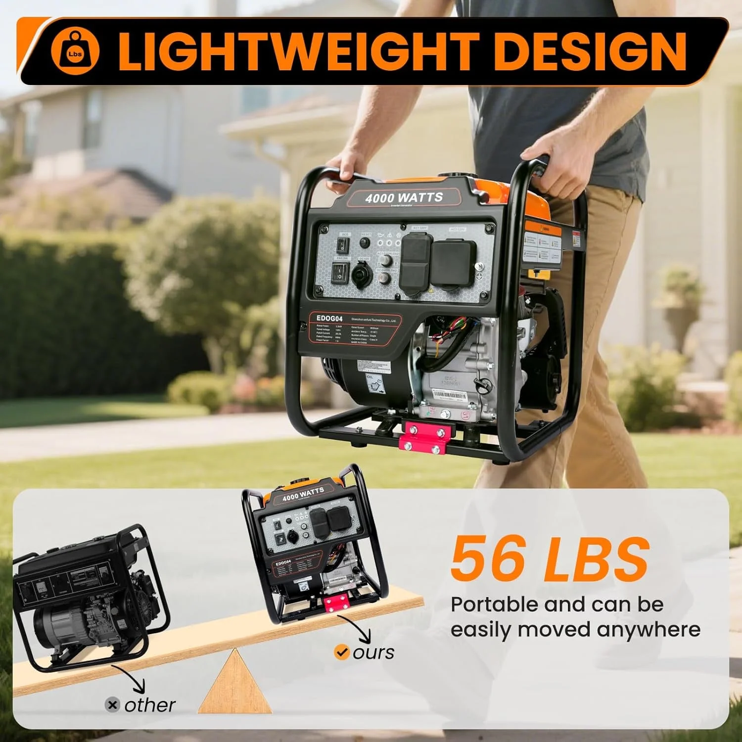- High Power Output: Equipped with a 4-stroke OHV engine, Efurden gas generator offers 4800W peak and 4000W running watts, providing a powerful and long-lasting performance. Ideal for RV travel, outdoor living, job sites or home backup.