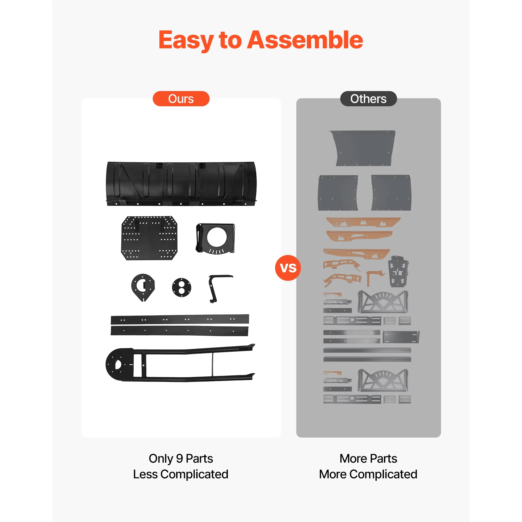 - Effortless Setup: The quick-release panel enables swift attachment or detachment from the support bracket, streamlining the installation process. Easily remove the snow plow attachment when not in use, making off-season storage more convenient and space-efficient.