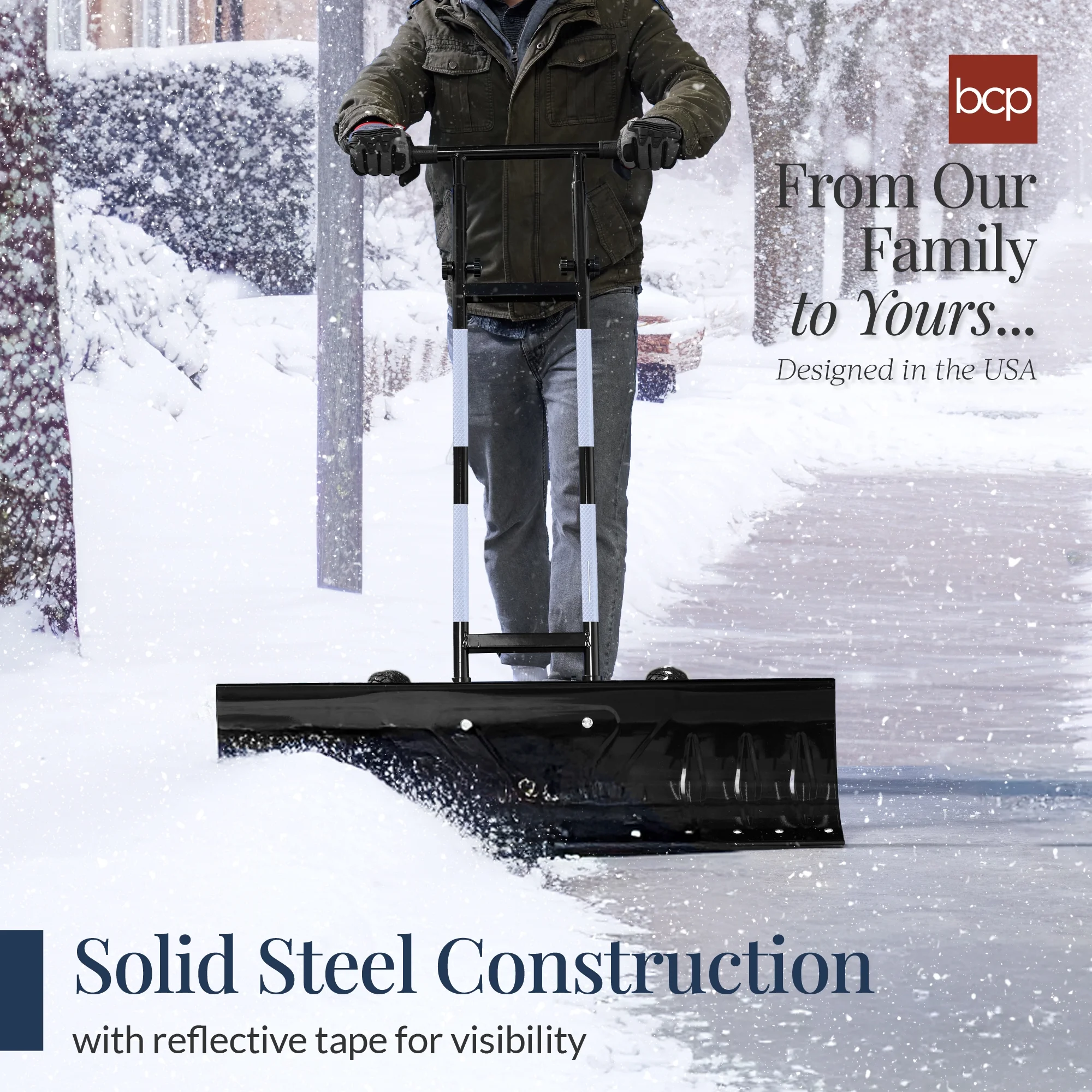 - REFLECTIVE TAPE INCLUDED: Visibility is key when the weather is difficult; vibrant, highly reflective add-ons will help the user be seen during early morning or other low-light conditions; PLOW BLADE DIMENSIONS: 36"(W) x 10"(H); HANDLE HEIGHT: 33.5-51"(H)