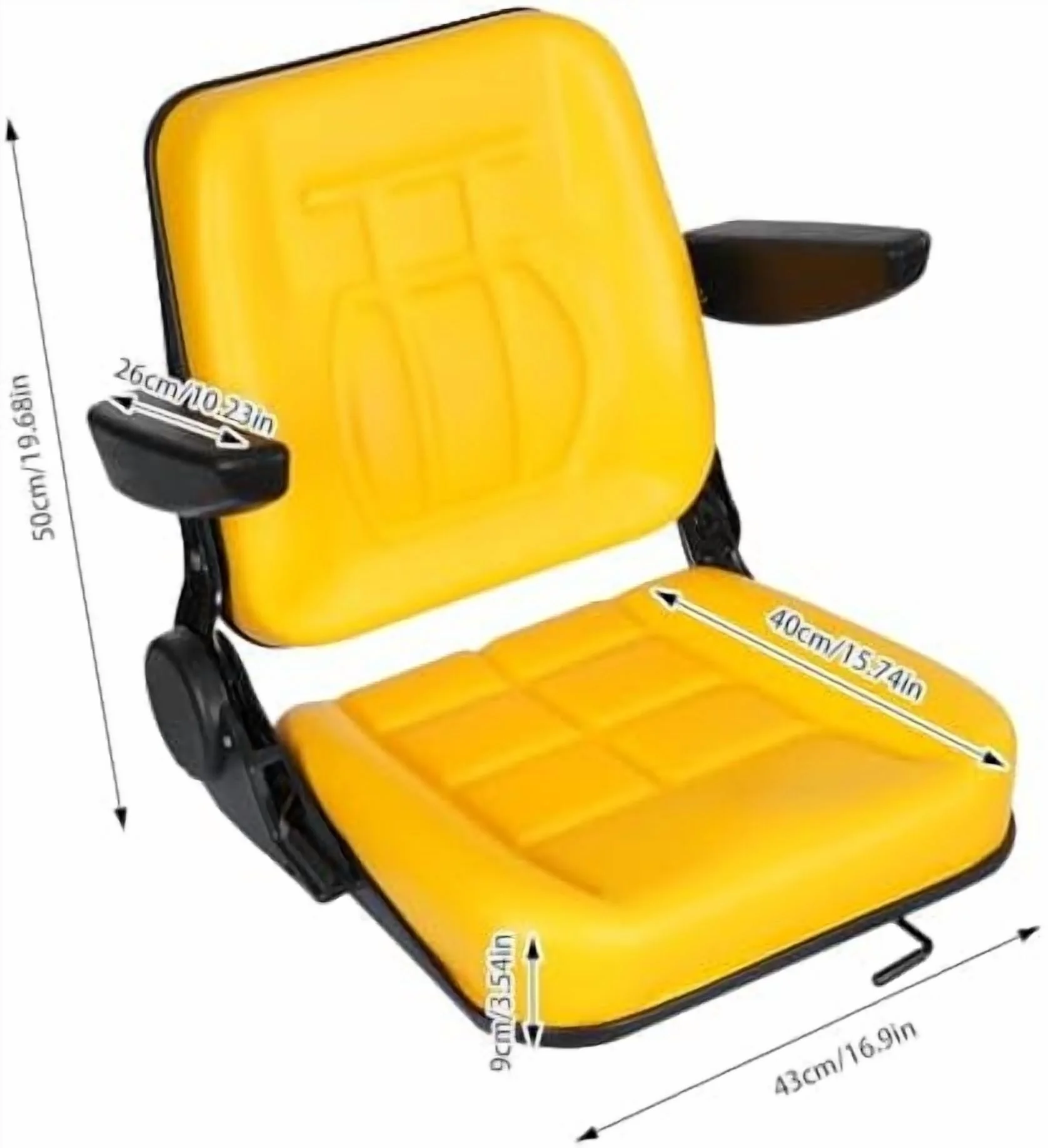• Tractor Seat, Lawn Mower Seat Seat with Armrests Durable Universal Replacement Seat for Excavator, Backhoe, Dozer Tractors, Forklifts, Heavy Equipment (Yellow)