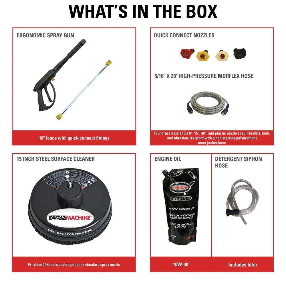 - 4 quick connect nozzle tips: 0 degree, 15 degrees, 40 degrees, and soap to use for a variety of cleaning applications