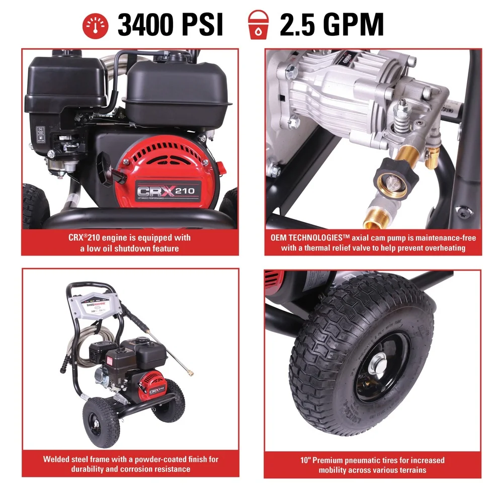 - 10 in. premium pneumatic wheels for ease of maneuverability across various terrain