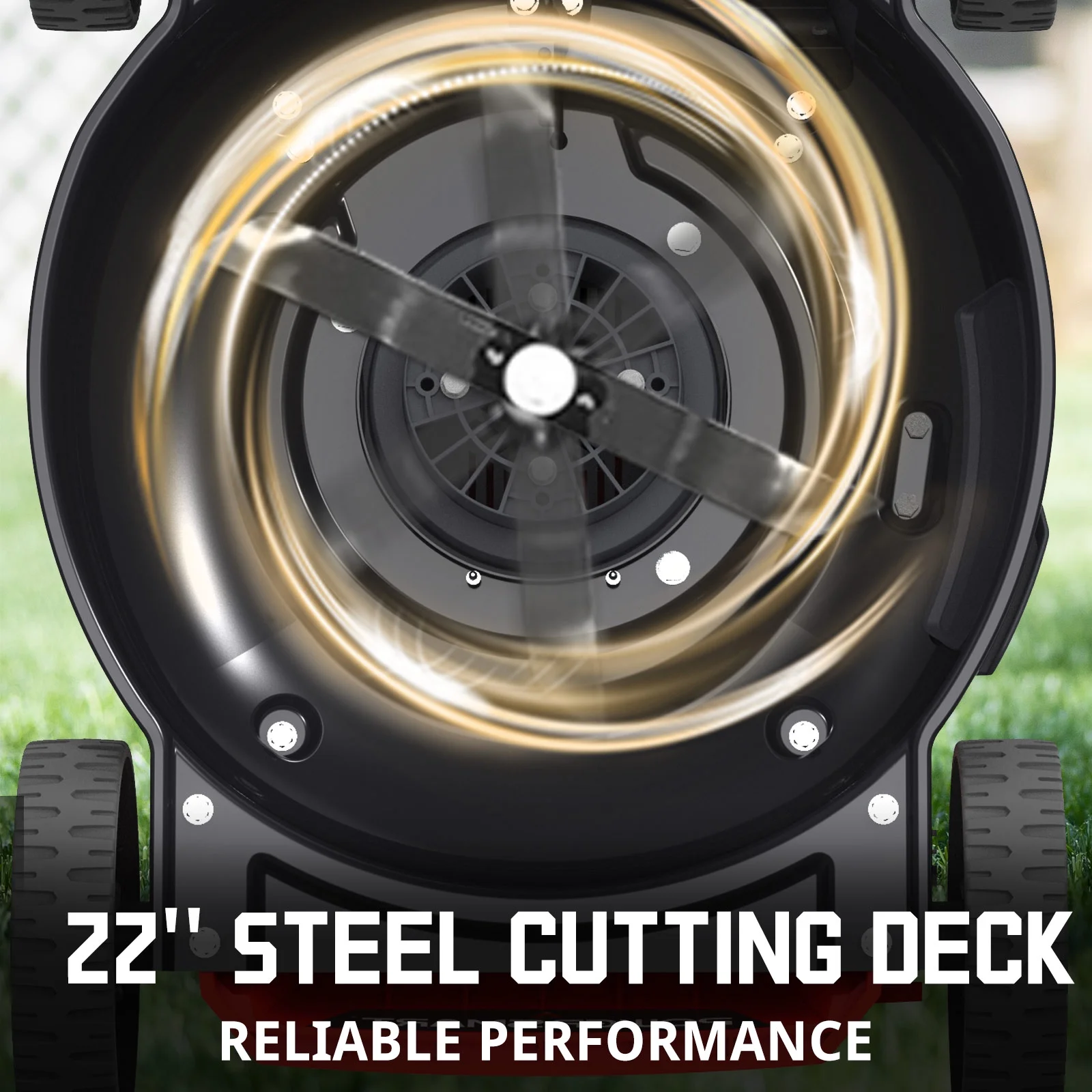 - Quiet Muscle for Big Jobs:A rugged 22-inch steel deck cuts more grass in fewer passes. Silent motor = chat with neighbors or listen to podcasts while mowing.
