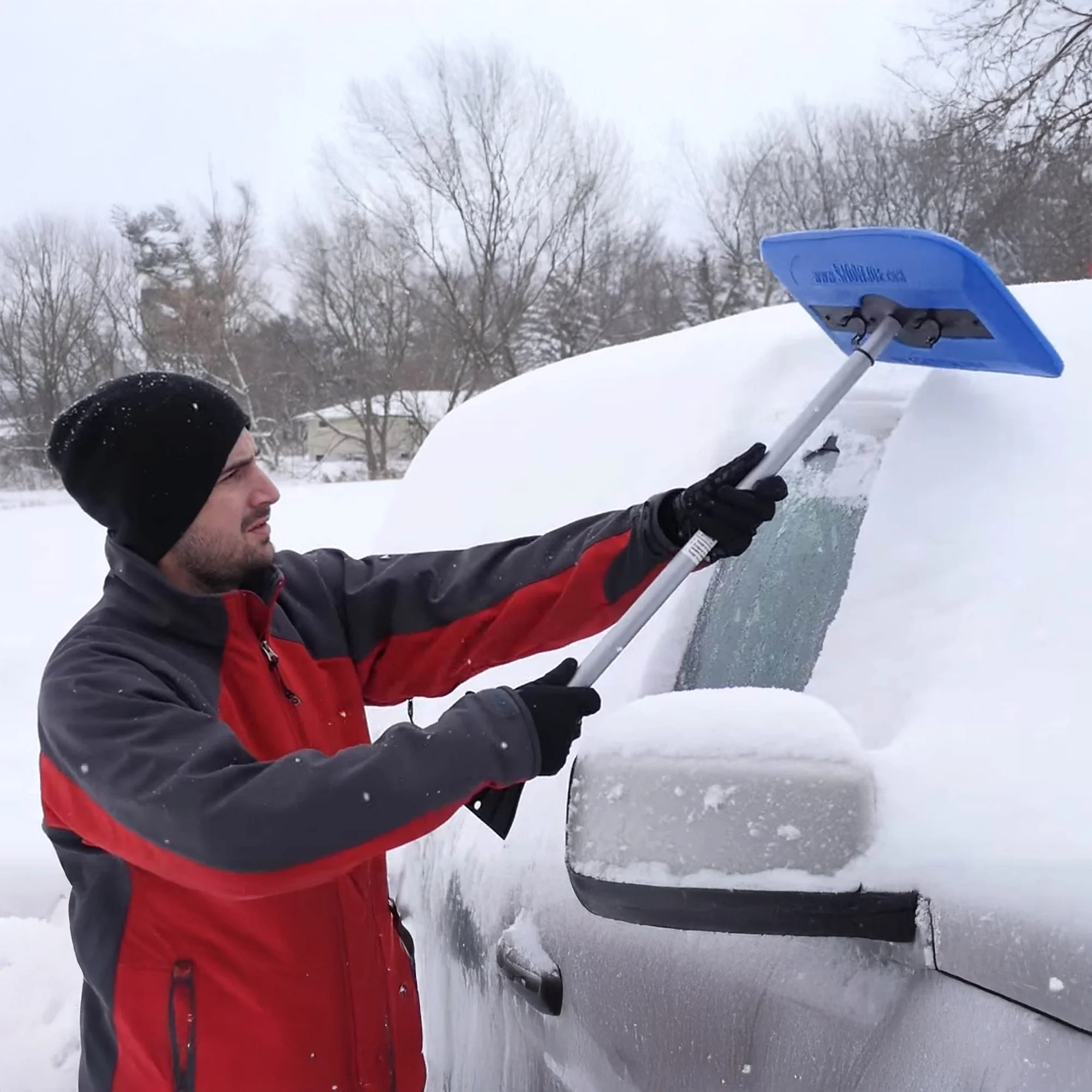 - Convenient 4-in-1 snow broom and ice scraper for quick winter car cleaning