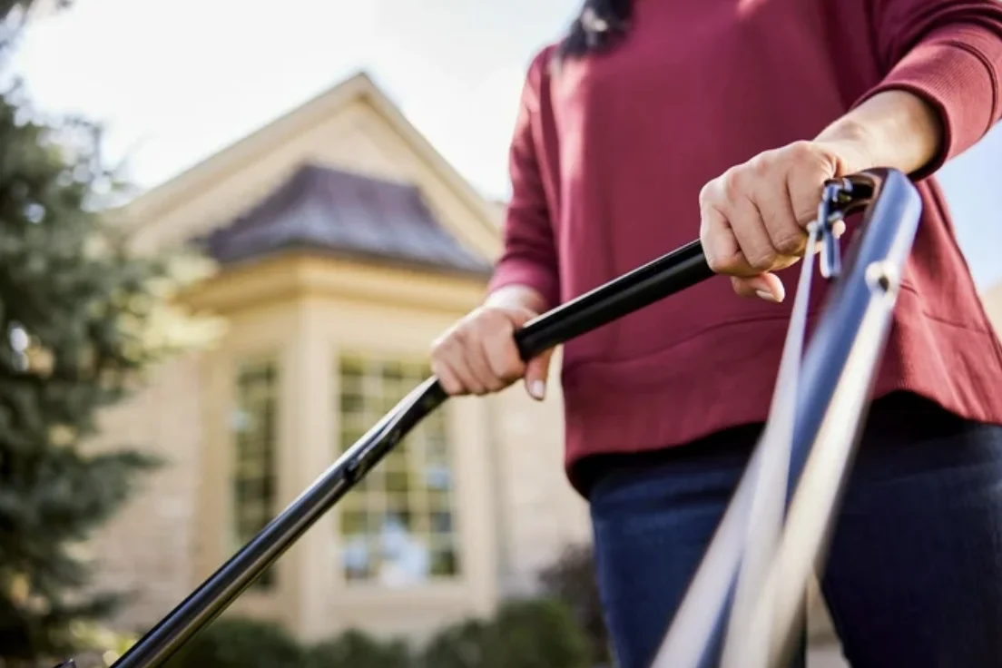 - EASY STORAGE - Conveniently fold the tool-free handle down to help maximize storage space when mower is not in use.