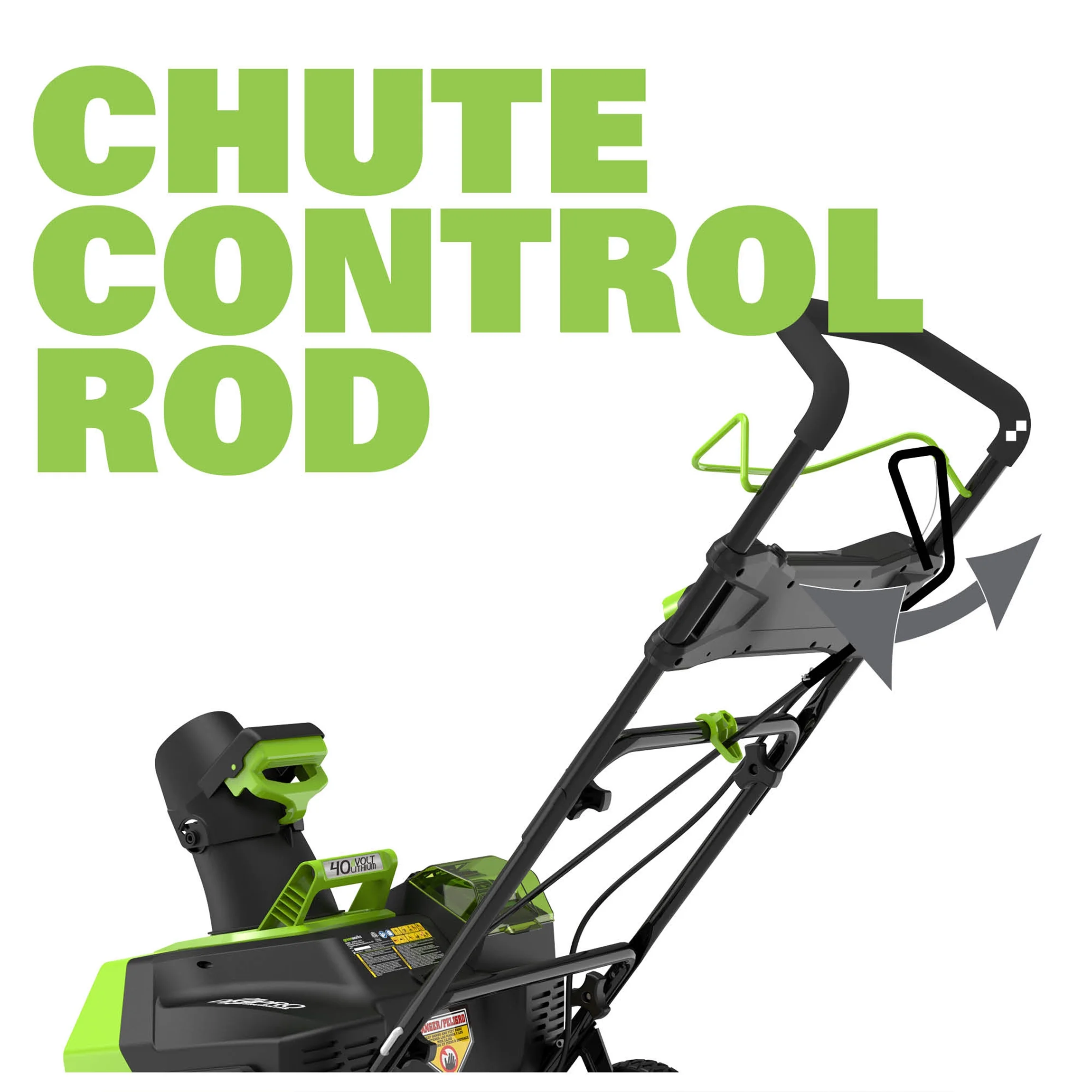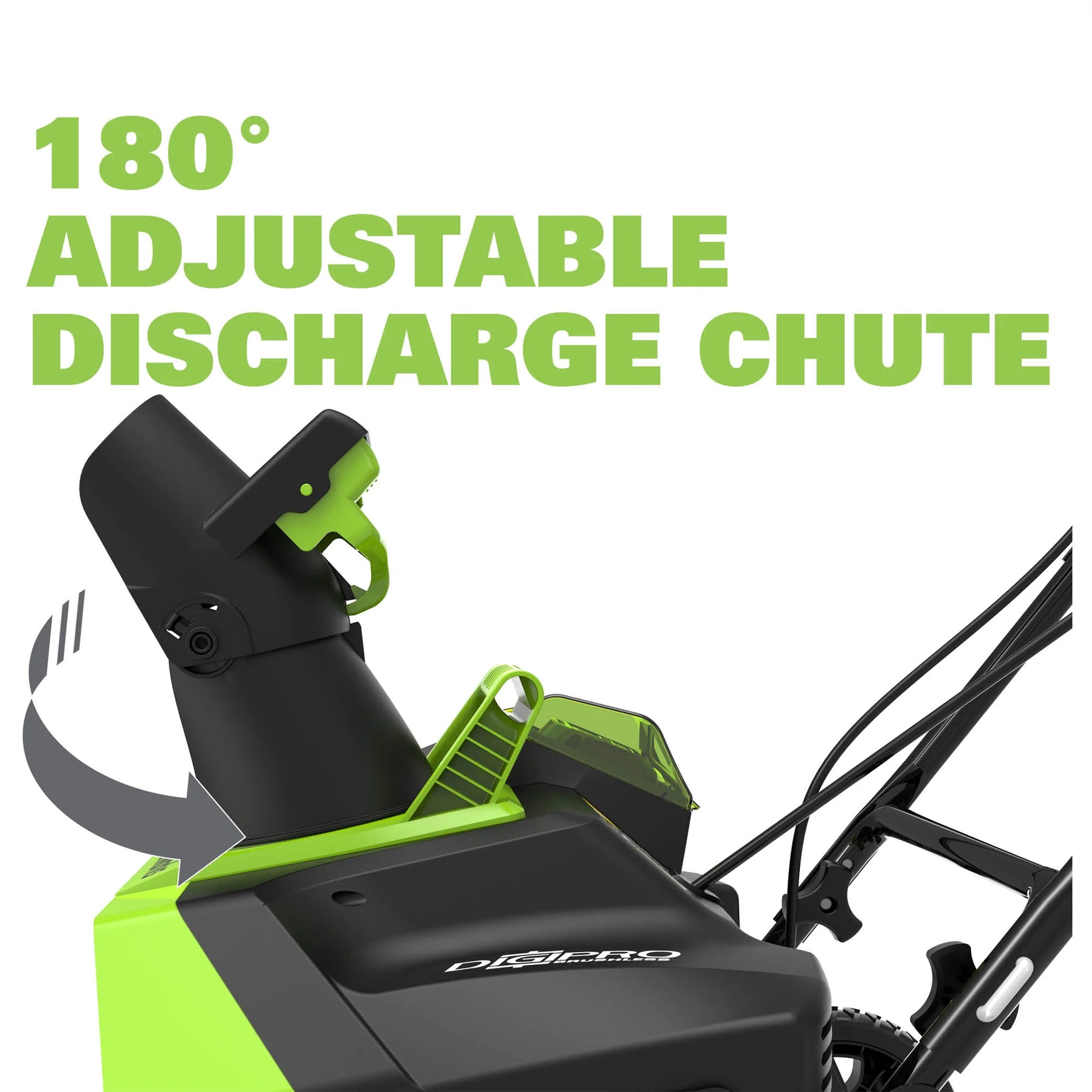 - Up to 20 ft. discharge from the 180 degree rotating chute