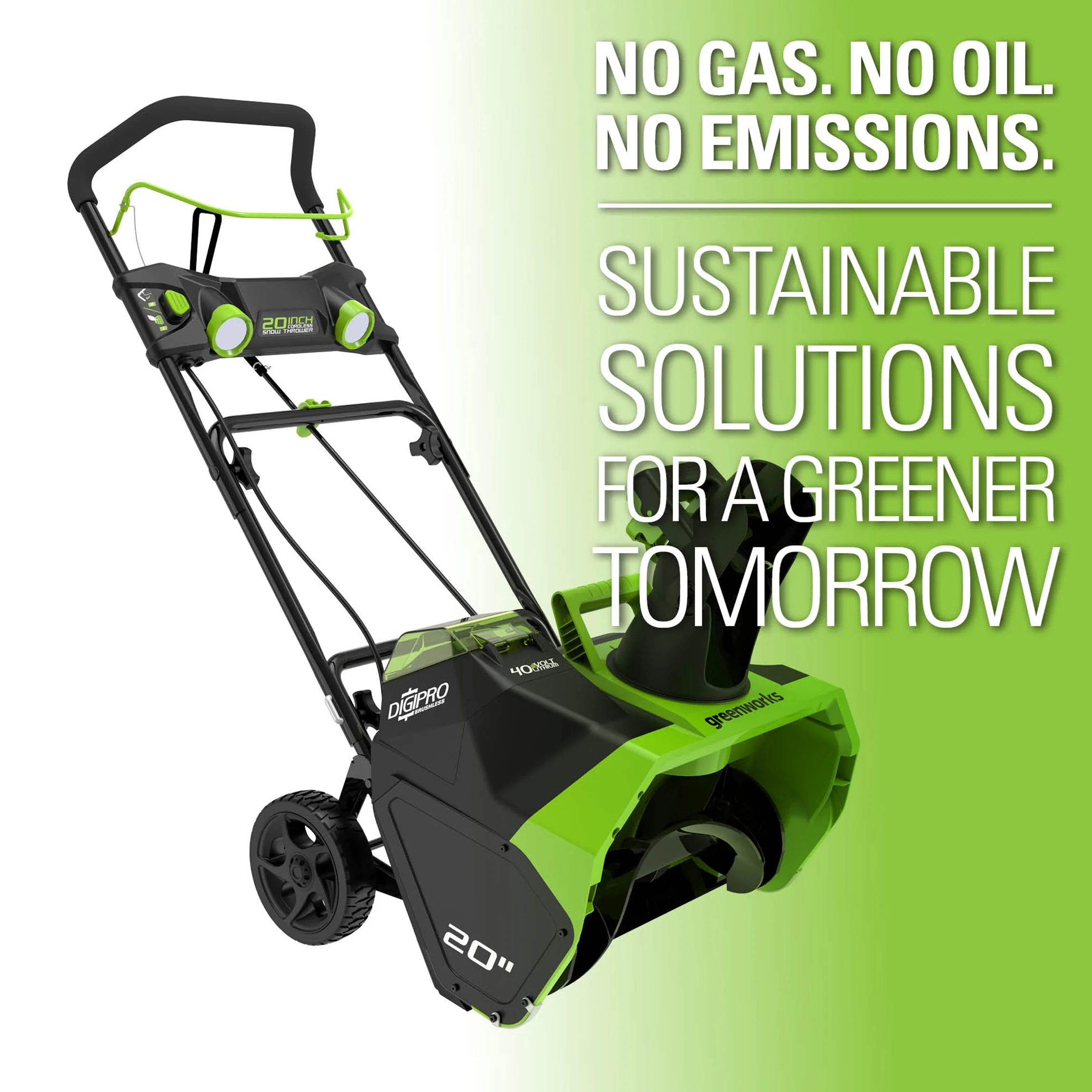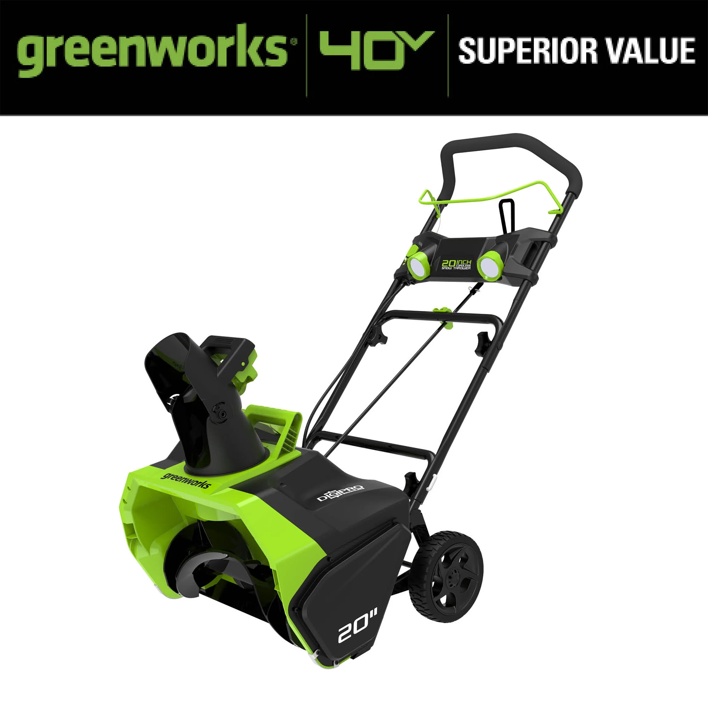 Features of Greenworks 20 in. 40V Cordless Brushless Snow Thrower with LED Lights: