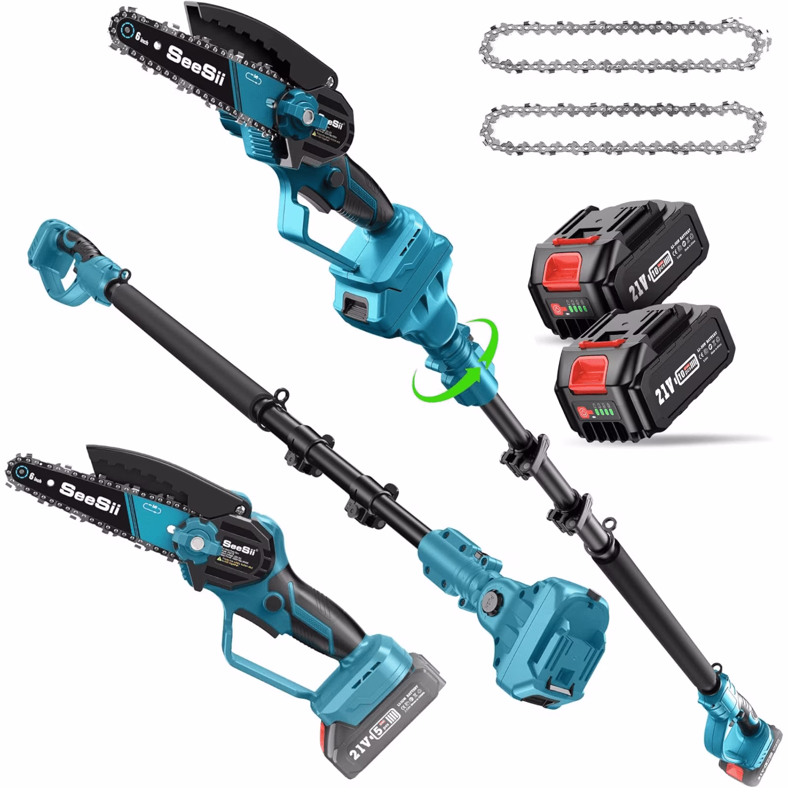 - Versatile 2-in-1 Design: Seesii 2-in-1 pole saw functions as both a mini chainsaw and a pole saw, making it perfect for all your pruning and gardening needs.