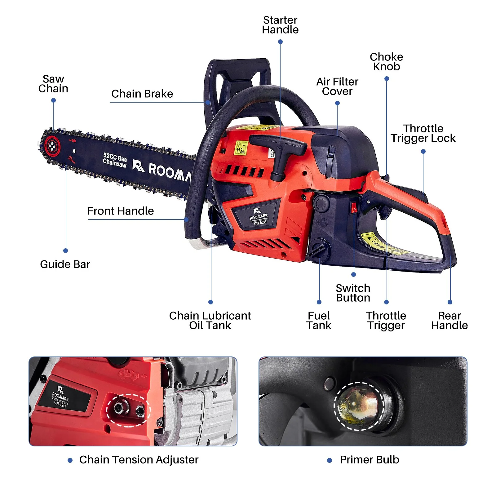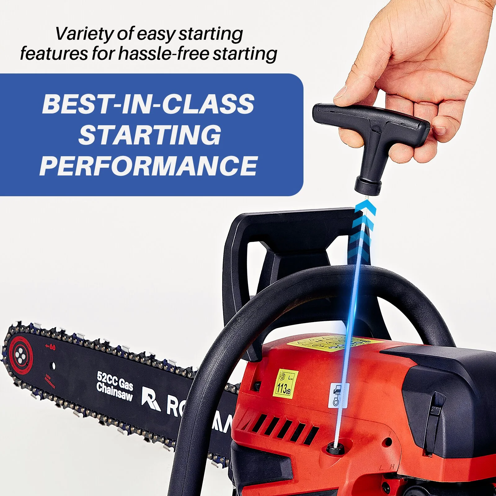 - Powered by a 52cc, 3.5 HP gas-powered engine that delivers steady power and performance for efficient wood cutting.