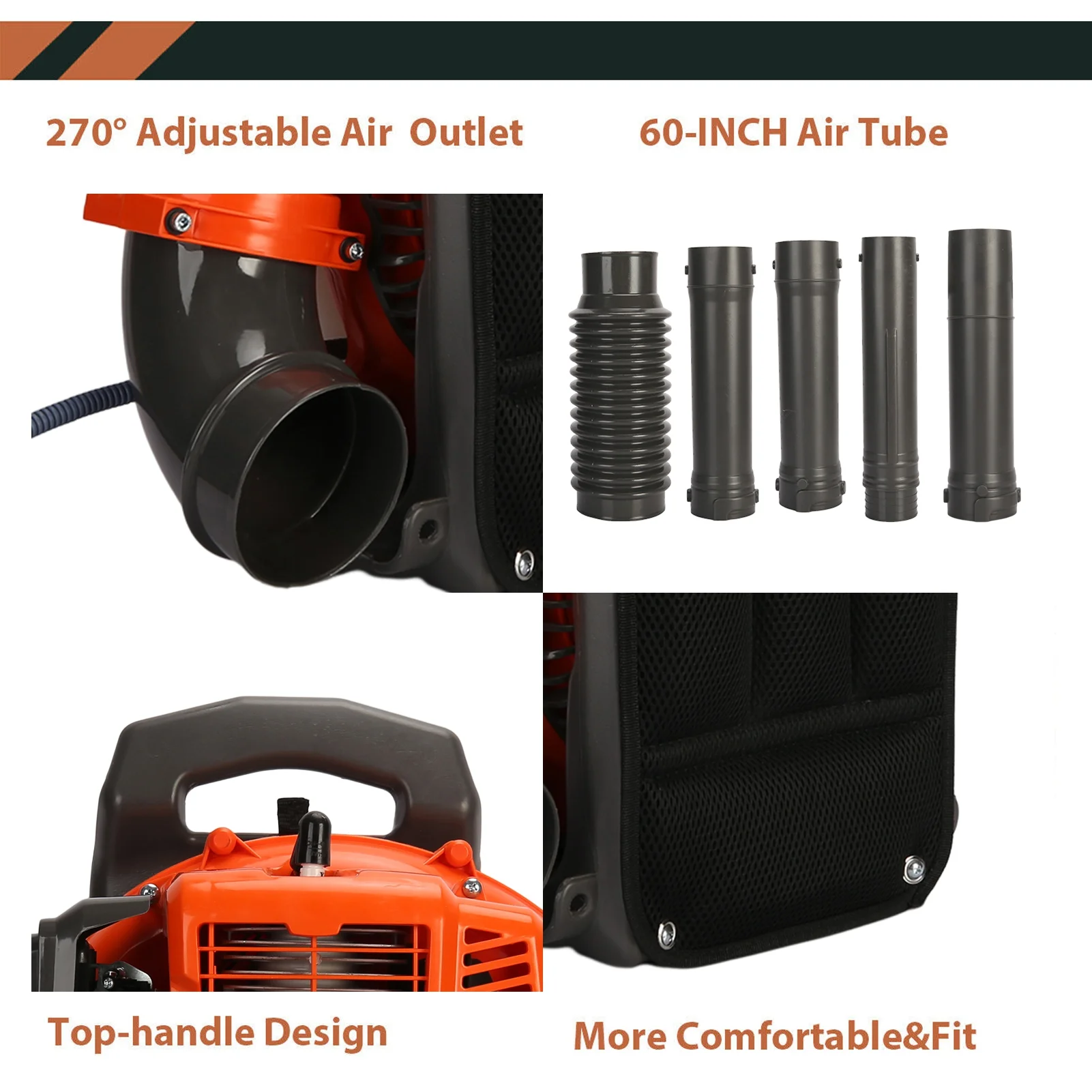 - It is suitable for garden, yard, park and so on. Our blower can be used for grass removal, leaf cleaning, snow removal, construction site dust removal. Our leaf blower is designed with a padded backrest, adjustable shoulder straps and waist belt, which can reduce your physical fatigue and strain.