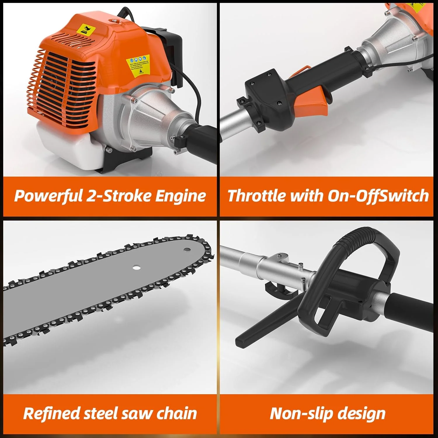 What You Will Get:1x 850ml fule engine head,1x two section pole,1x extension pole,1x shouder blet,1x wrench,1x proportioning pot,1x pole saw series working head