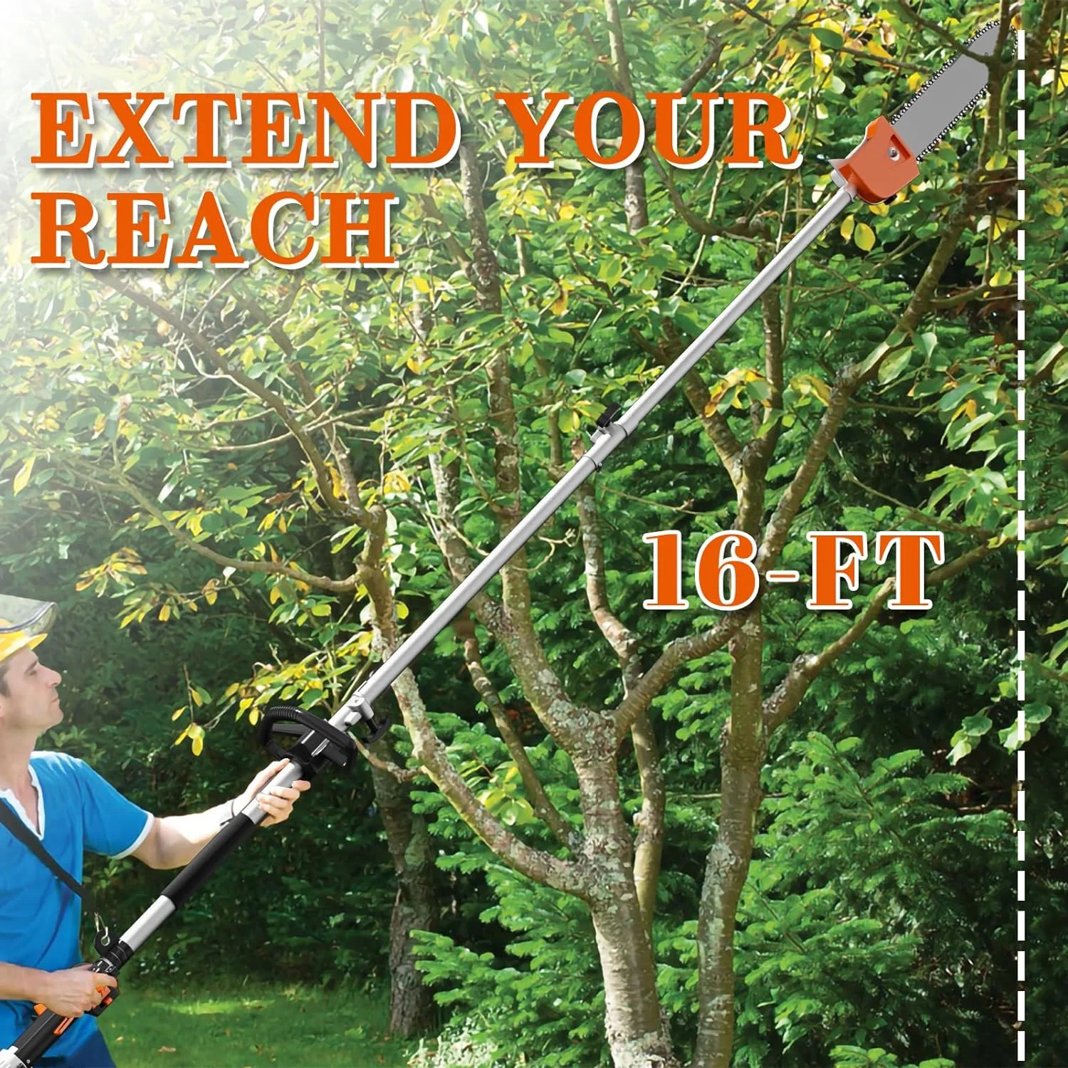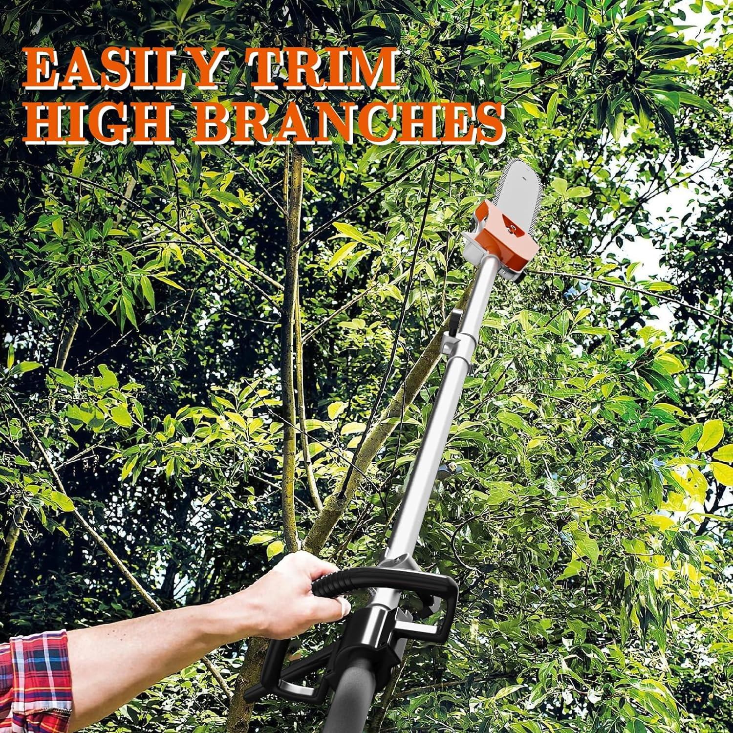 Adjustable Length:The power pole saw with 2.7ft extra pole together,which can easily extend from 7-9.5ft by extension pole to cut different height