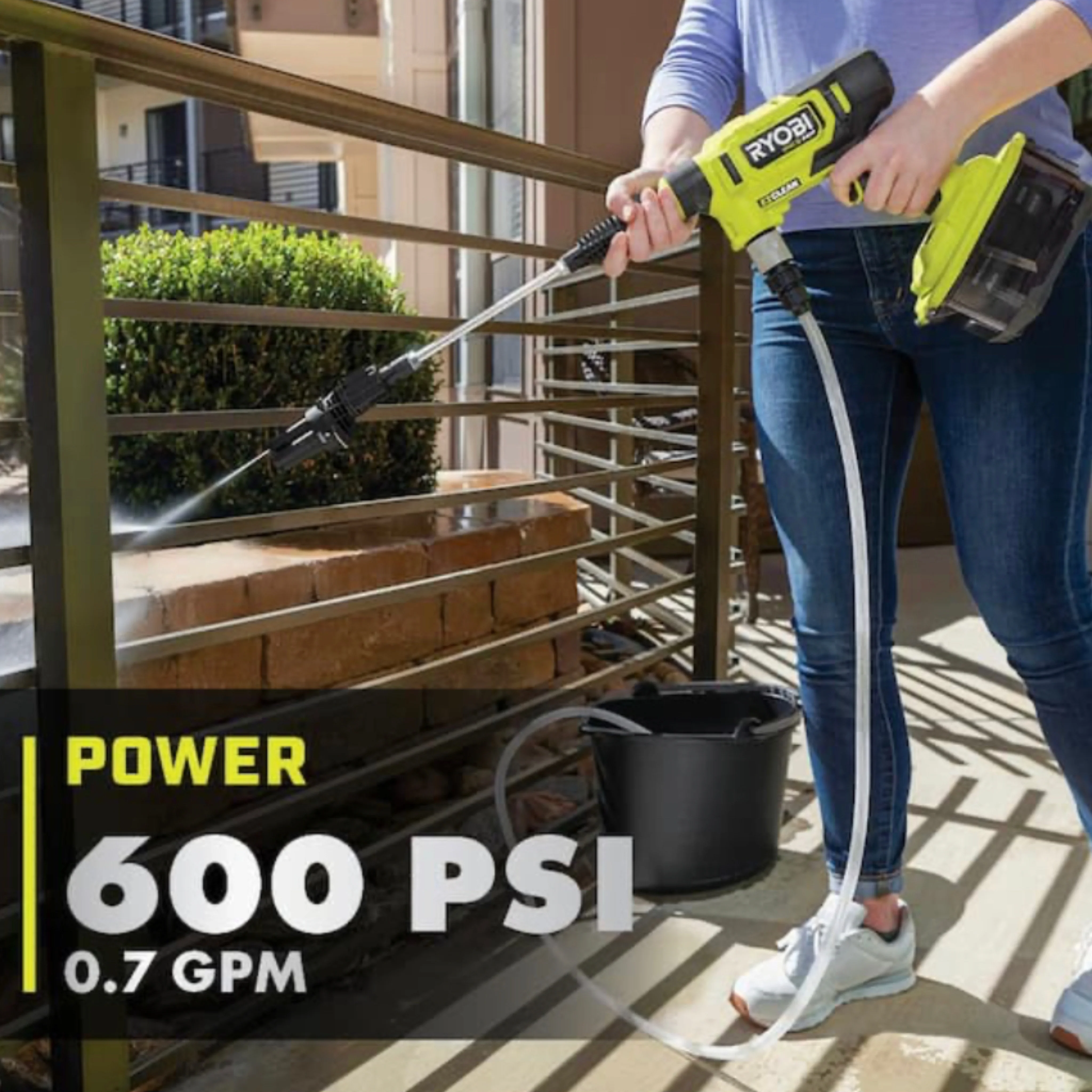 Ryobi ONE+ HP 600 PSI at 0.7 GPM 18V Cordless Electric Cold water Power Cleaner, 20 ft. Siphon Hose