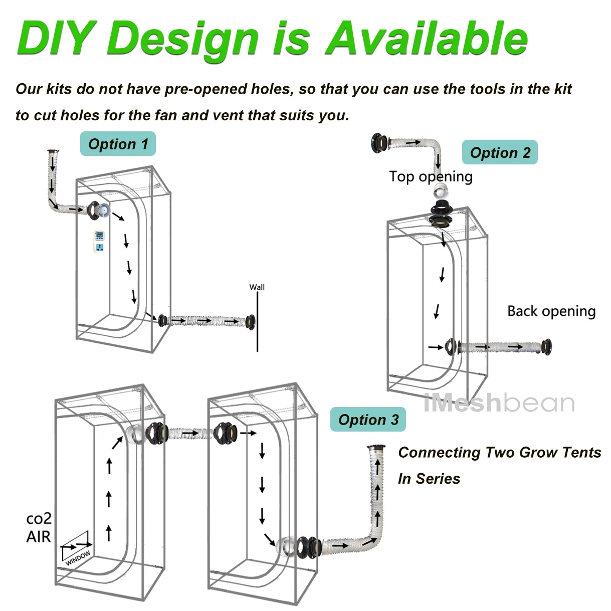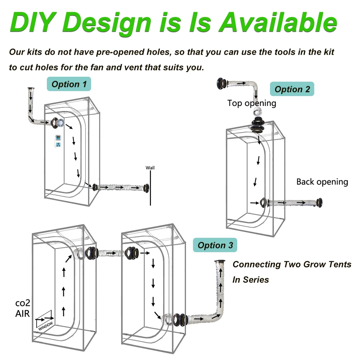 Allows the growing environment to be controlled and manipulated as needed; open, close or vent system to adjust temperature, humidity, CO2 levels, and light conditions.