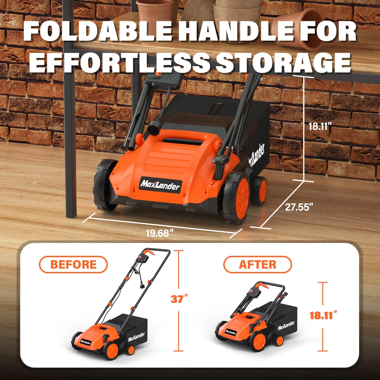 - POWERFUL PERFORMANCE: MAXLANDER electric dethatcher featured with 12Amp powerful copper motor providing up to 3,000RPM speed, rakes a 13" wide path to get your job done faster and more efficiently. (Note: This dethatcher is not a lawnmower but an efficient solution for removing the layer of debris and dead grass from your lawn and keeping it healthy.)