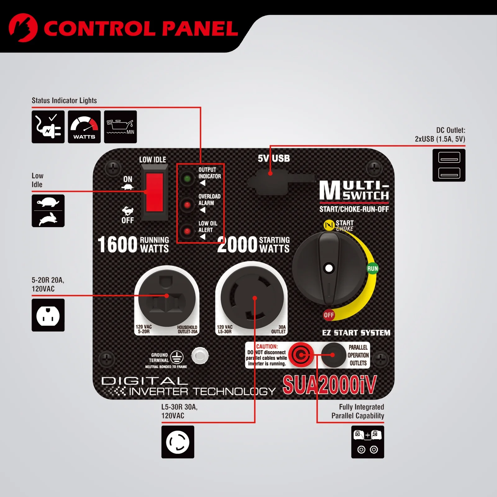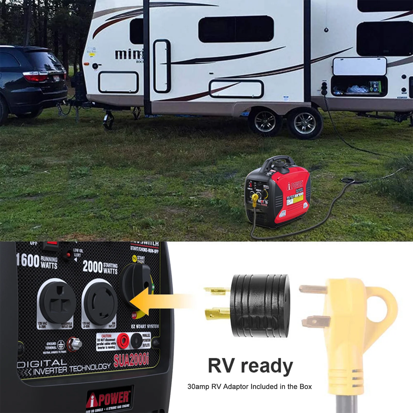 - Includes NEMA 120V outlet, NEMA twist-lock outlet, 12V adapter plug, and 30 amp RV adapter