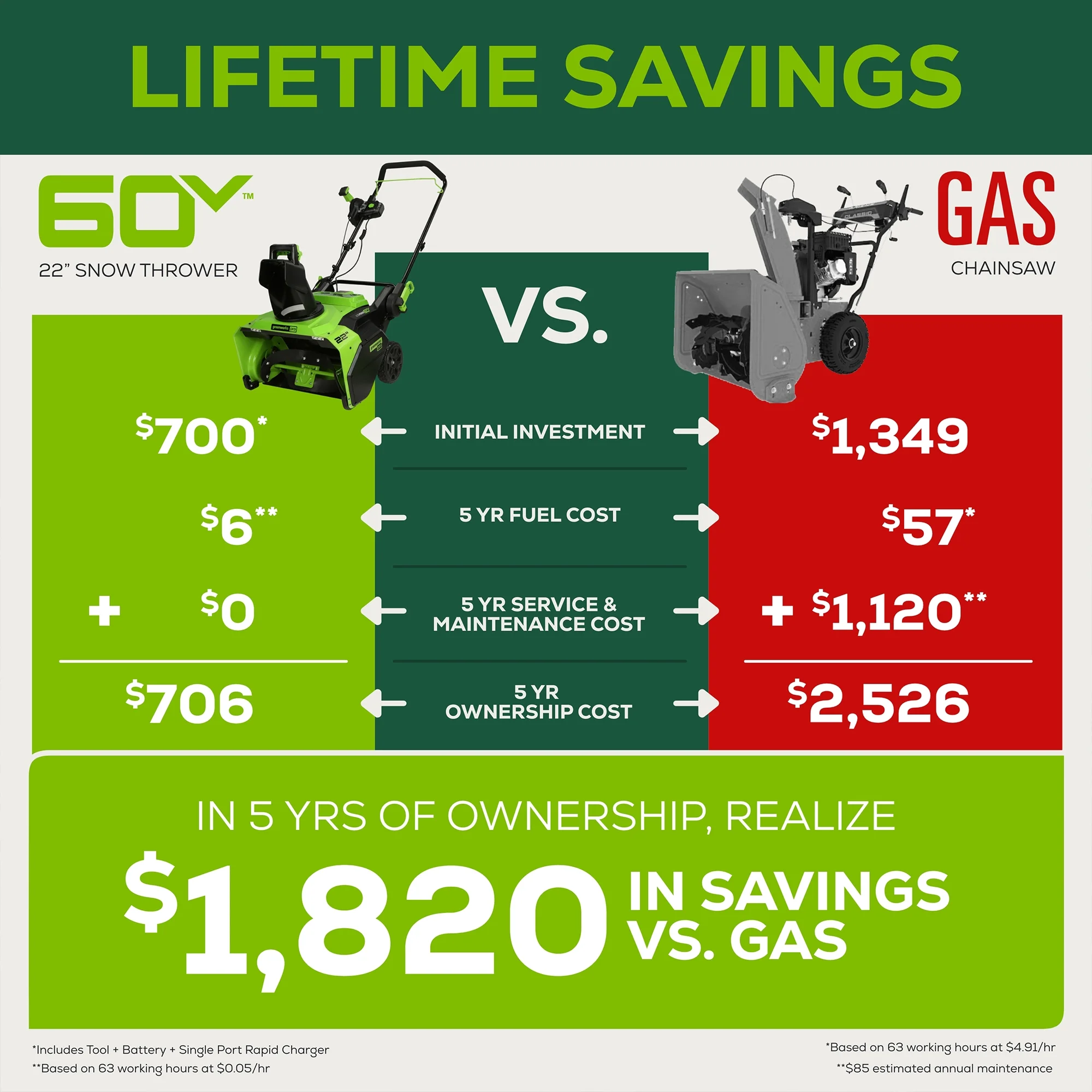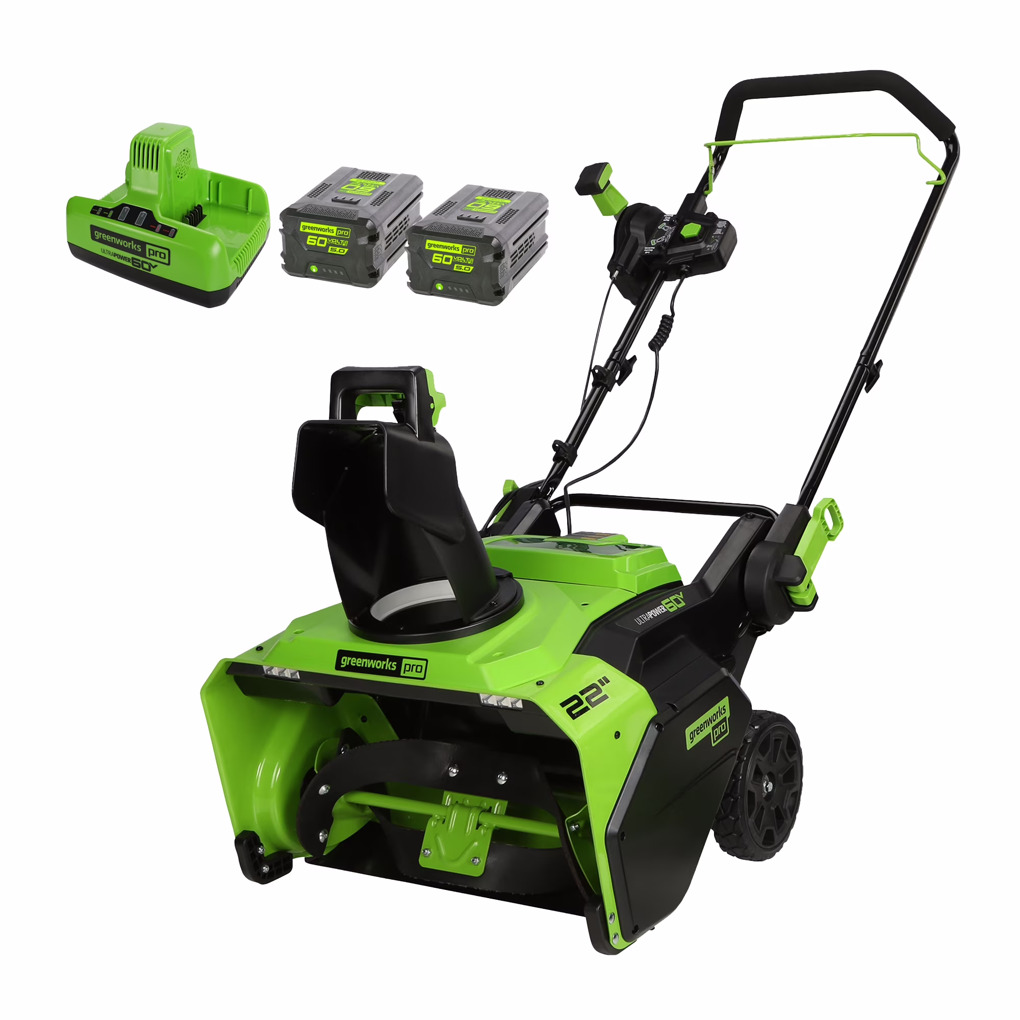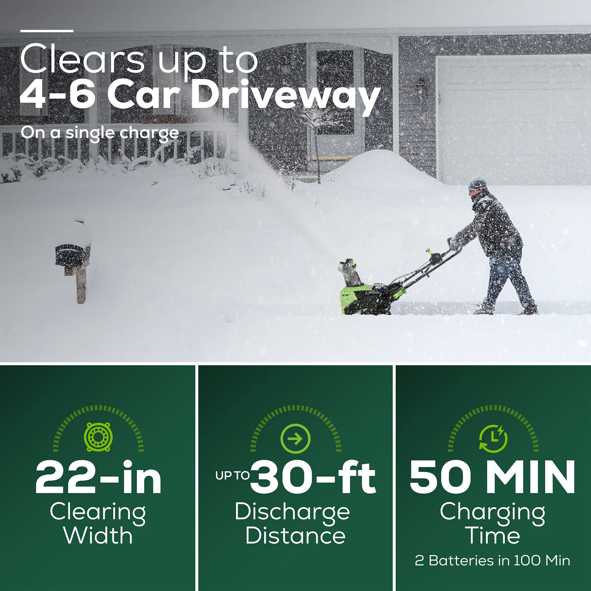 Greenworks 60V 22" Snow Blower Battery Powered Brushless Motor, Dual Batteries & Charger Included