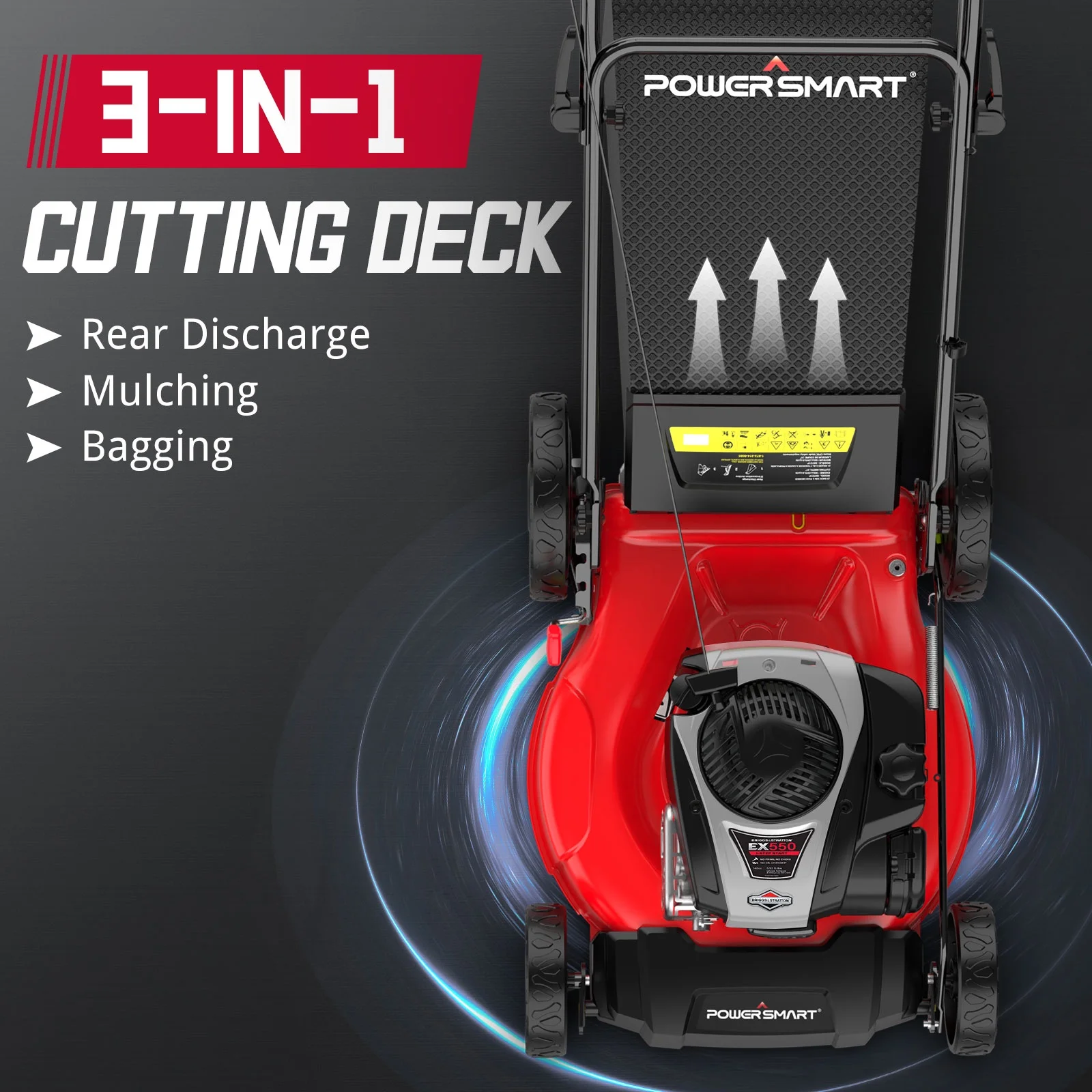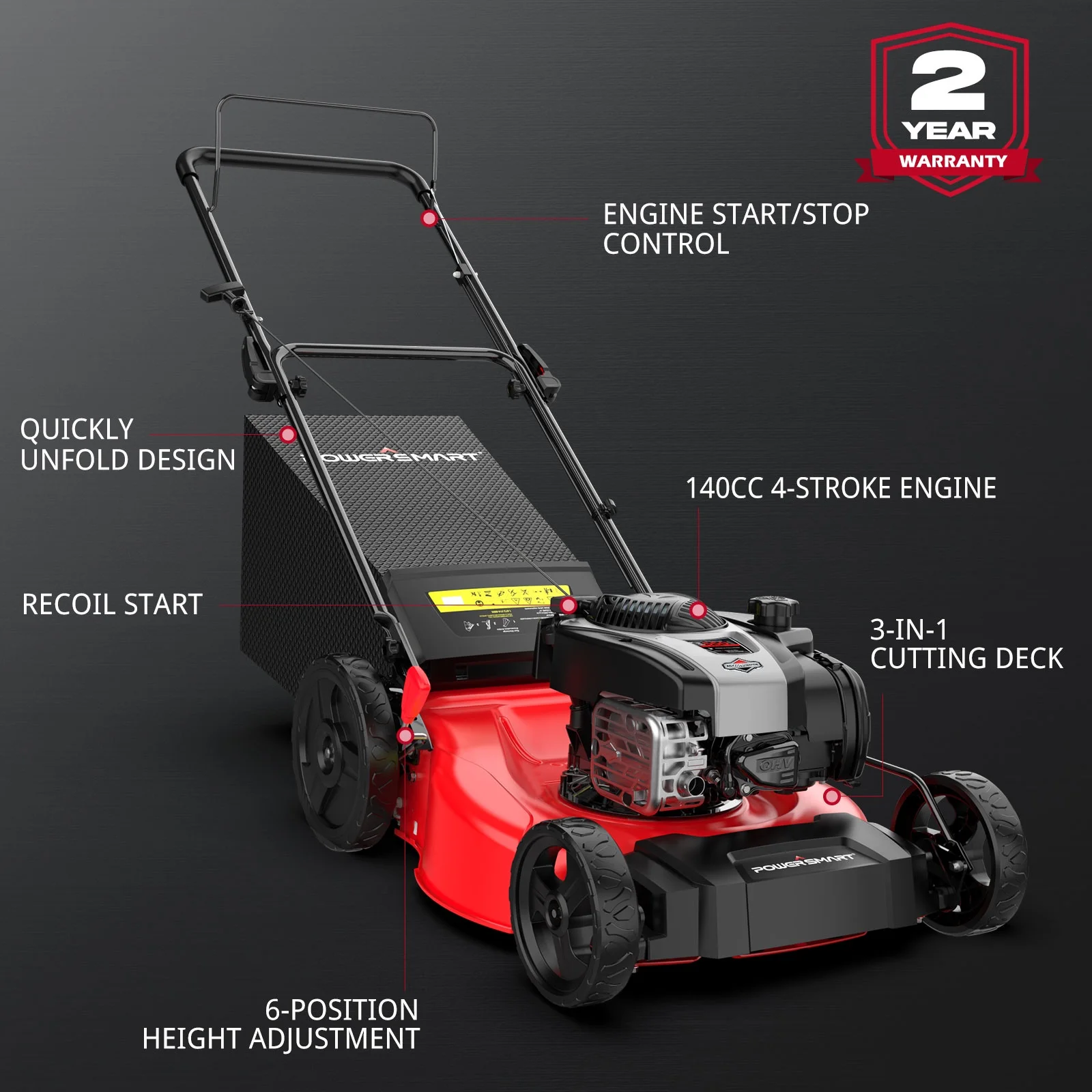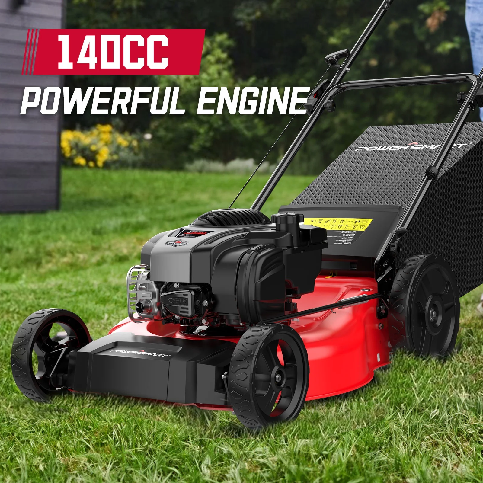 PowerSmart 21-inch 140cc 4-Cycle Gas Powered Push Walk-Behind Mower, 2-in-1 Bag