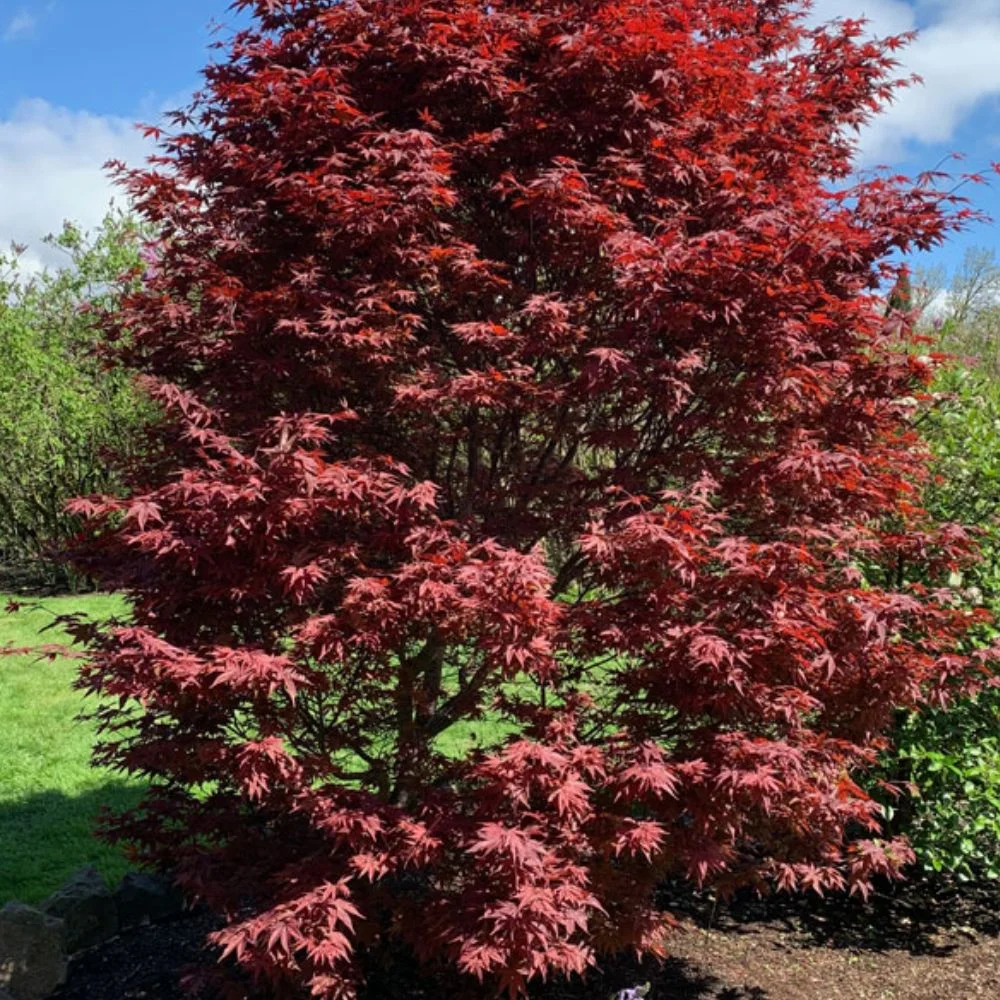 Twombly��s Red Sentinel is a unique columnar Japanese Maple with striking red foliage and a narrow upright habit��ideal for small spaces or as a vertical accent in the garden.