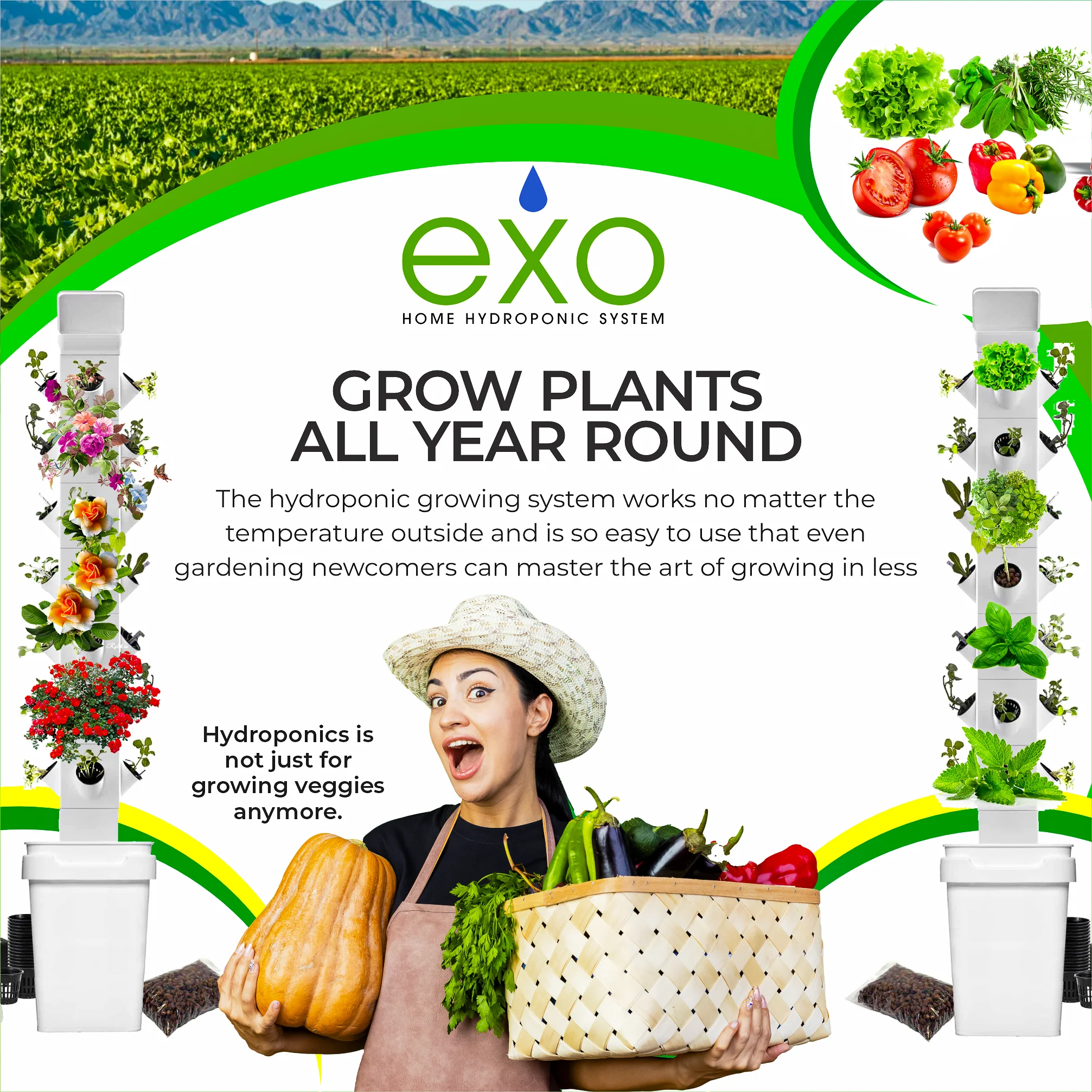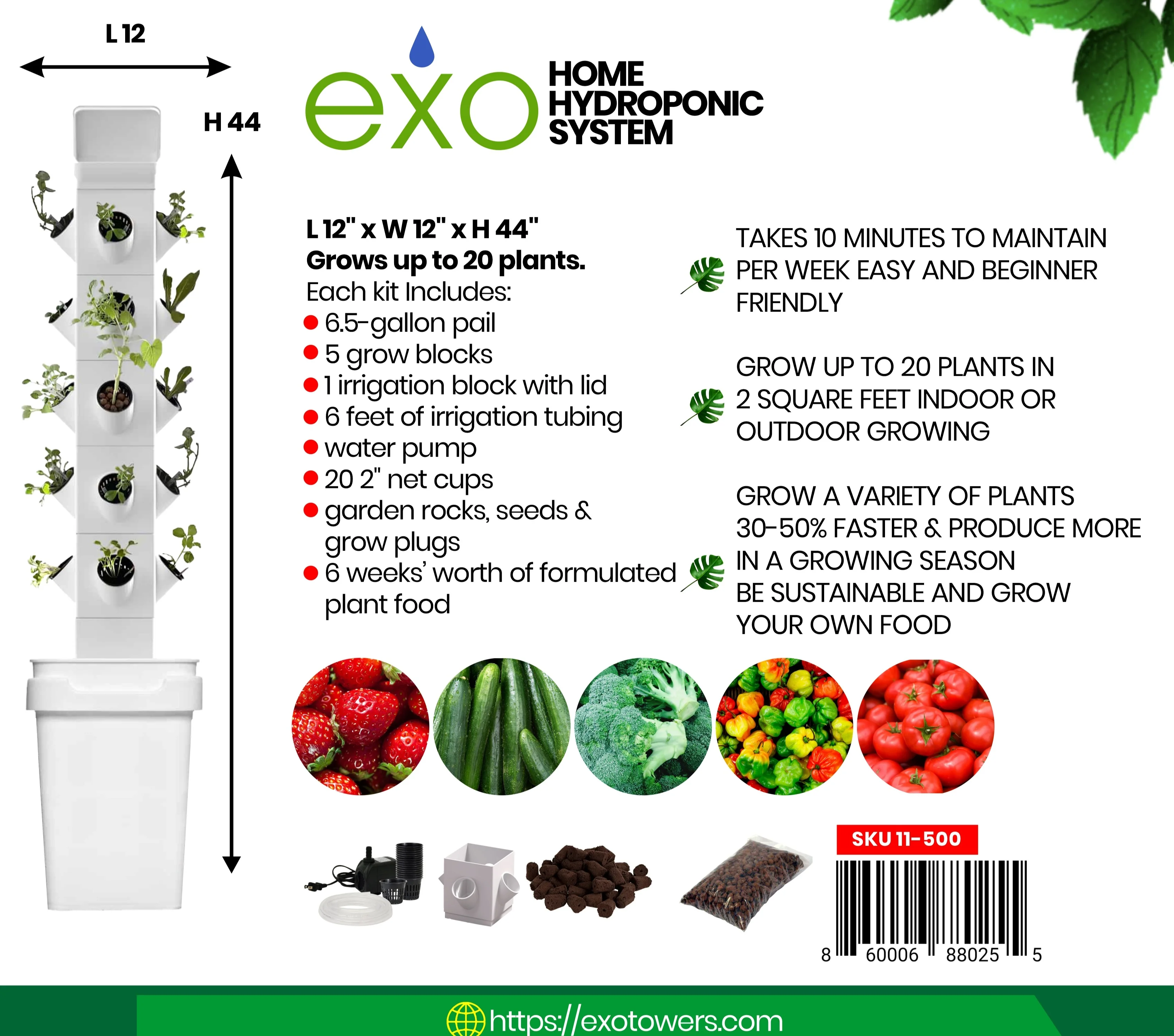 - Soil-free solution: Whether you live in a house, apartment, or high-rise, the Exo hydroponic vertical garden tower for plants provides a soil-free solution to home gardening both indoors and outdoors; this self-watering, the home hydroponic system makes it easy for anyone to harvest fresh farm quality produce from the comfort of their home