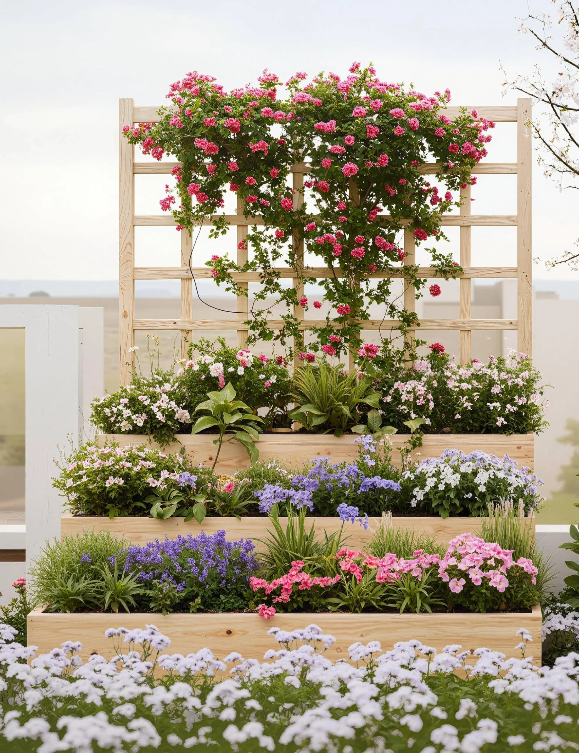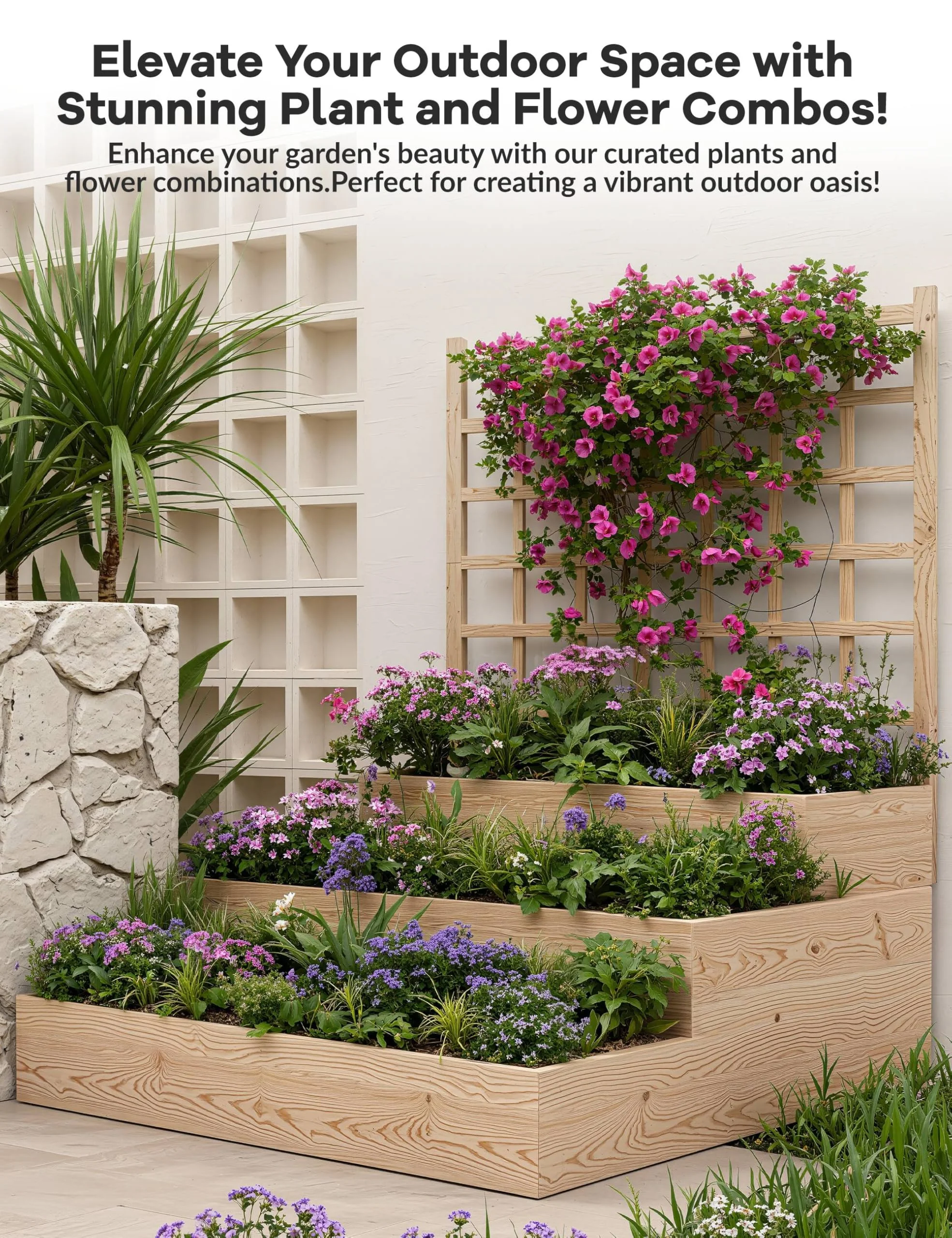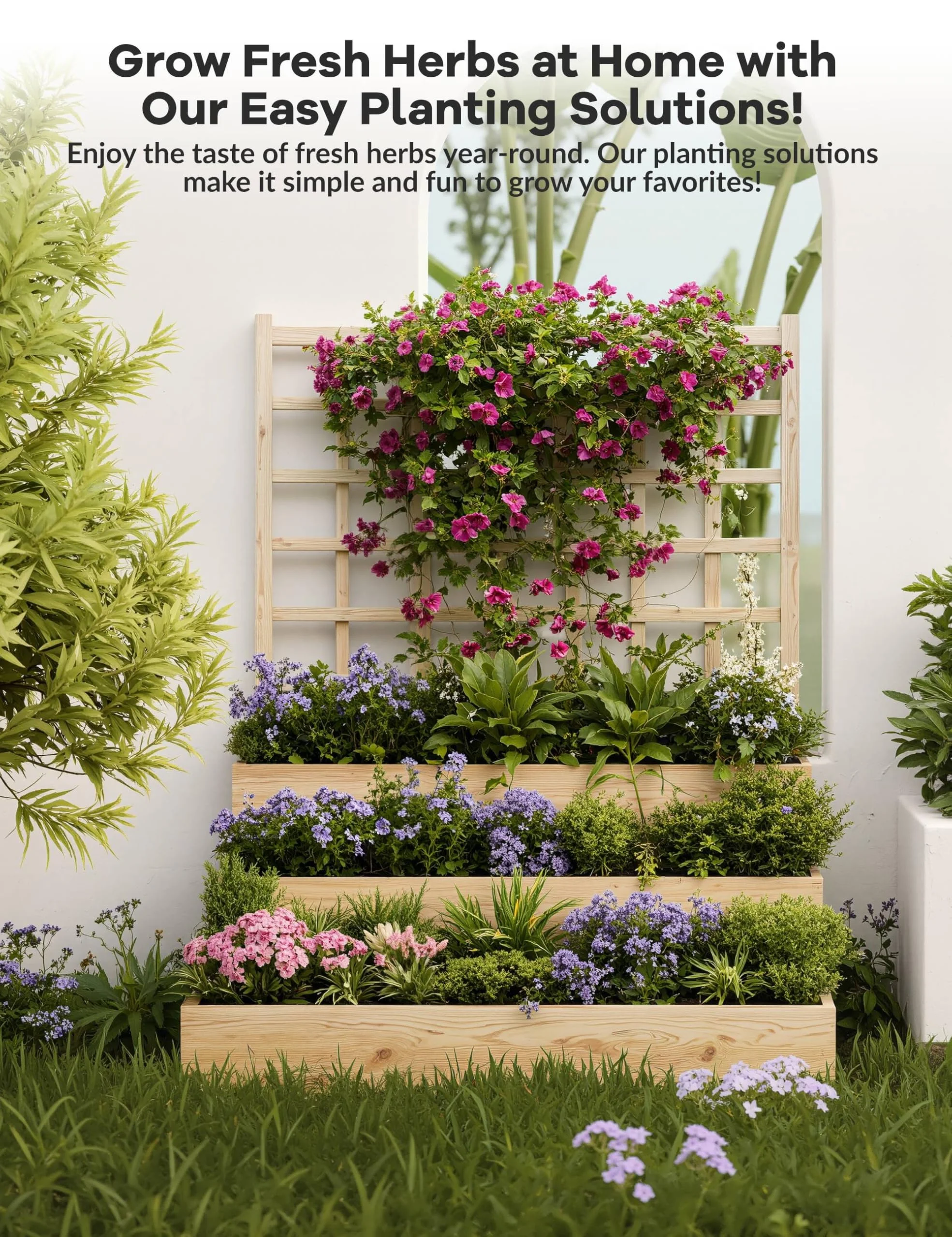 - 2,Built-in Climbing Support: The sturdy lattice trellis supports vining plants like cucumbers, beans, and flowering vines for vertical growth. Improves air circulation and sunlight exposure for healthier plants and better yields. Doubles as a decorative elements to hang lights or small planters. Combines functionality with aesthetic appeal to enhance any outdoor space.