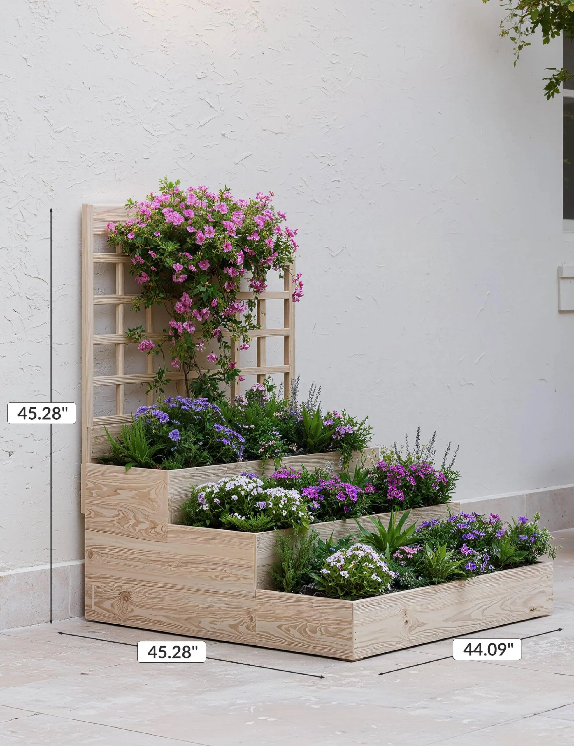 - ?1,Multi-Level Gardening Solution: Grow herbs, flowers, and vegetables in this 3-tier raised garden bed with varying planting depths. The top- tier is ideal for shallow-rooted plants like lettuce, while deeper levels accommodate tomatoes and root vegetables. Its vertical design saves space while providing ample growing area for diverse plants. Perfect for patios, decks, or small yards to create a productive and beautiful garden display.