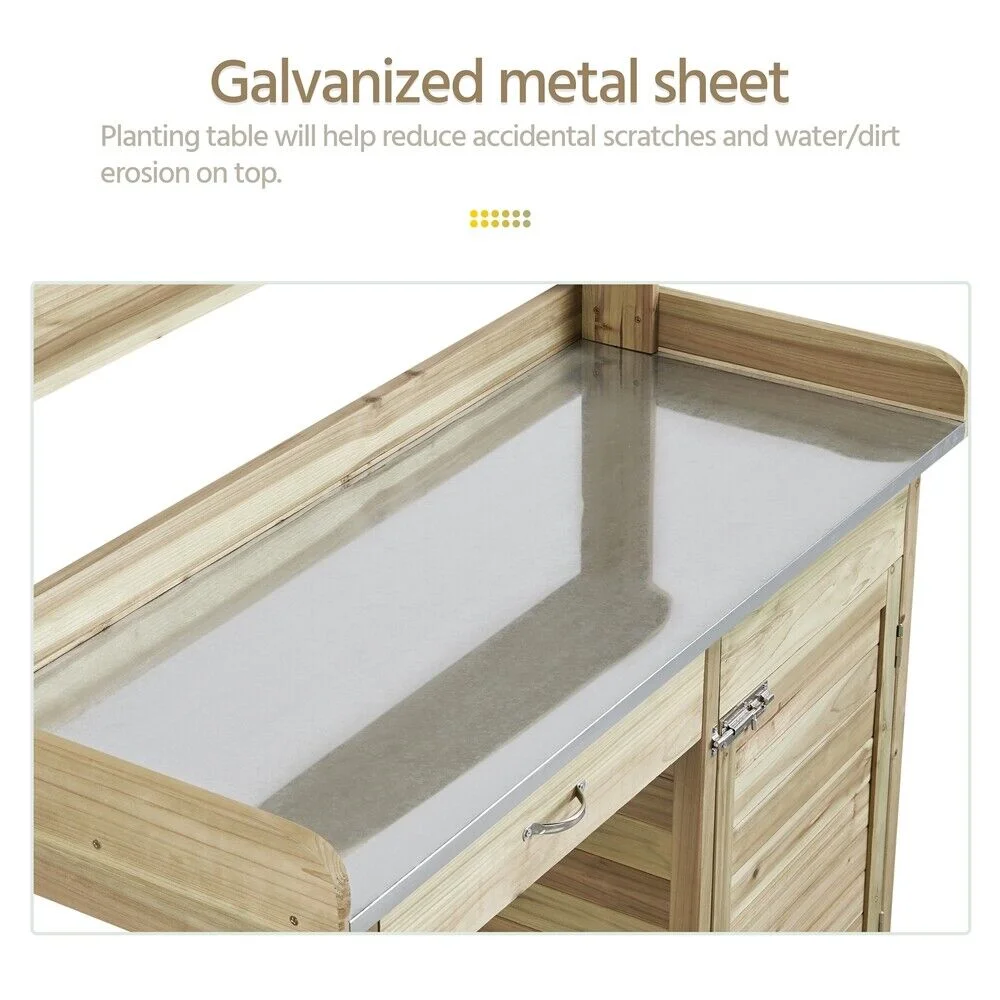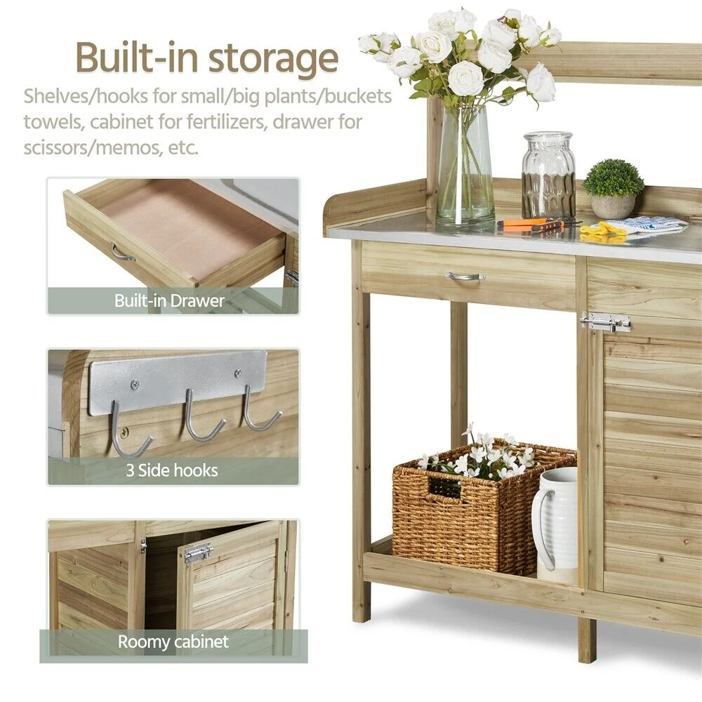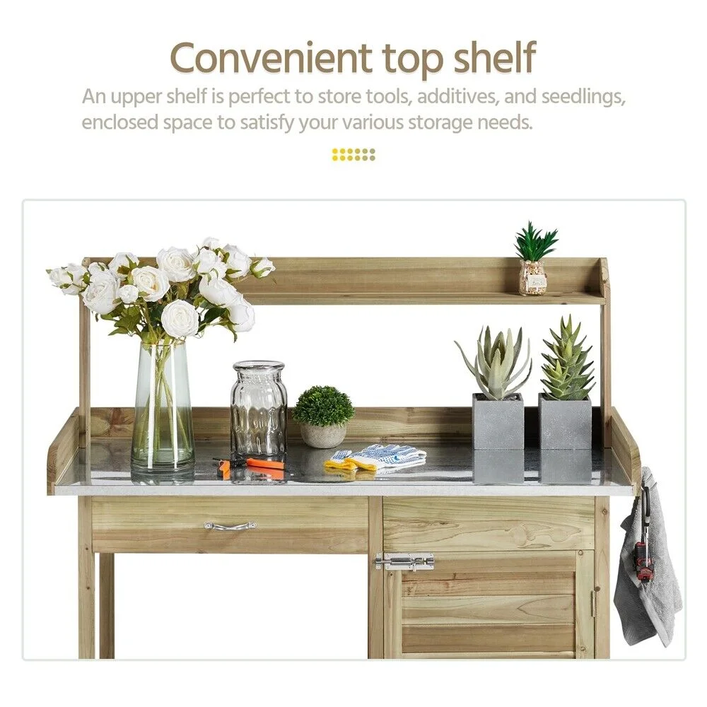 Useful: Storage options include top, drawer and multiple tiers of shelves. All these are designed to offer you an easy access to you gardening tools, towels, sprayers, plant containers.