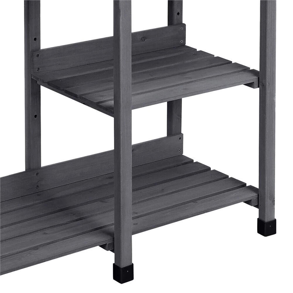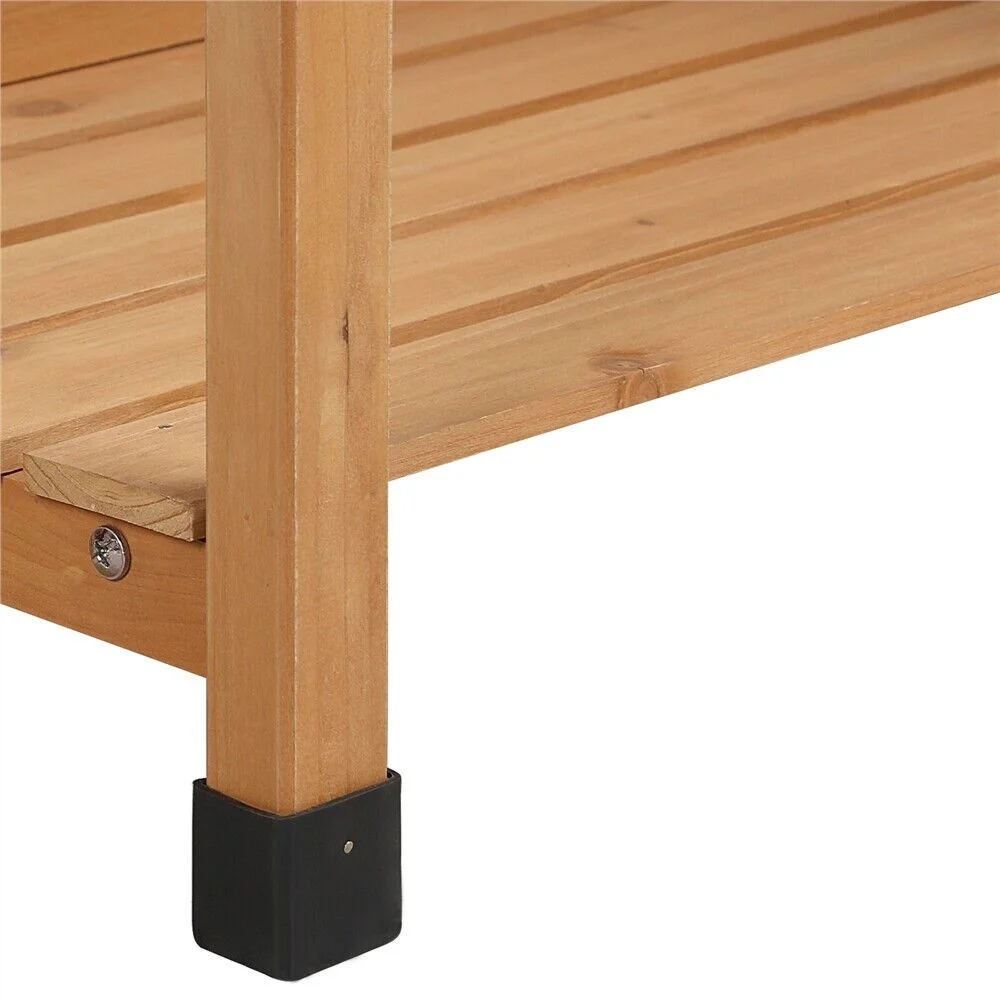 Our potting bench is made of 100% Solid wood, which is known for its strength and dimensional stability as well as its natural resistance to rot and pests. The outstanding characteristics of fir and solid structure make this shelf durable and strong enough for outdoor use.