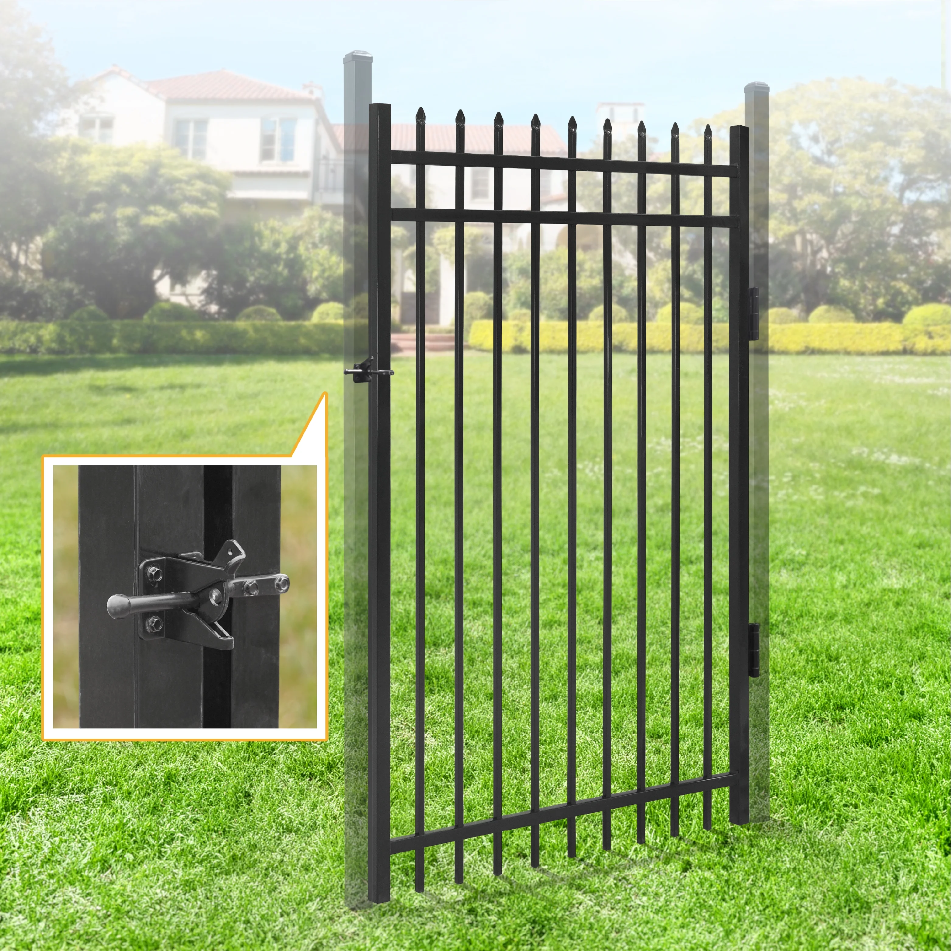 Fencer Wire Heavy Duty Pinnacle Fence Gate, 6FT Height x 4FT Width Outdoor Fence Gate, Outdoor Anti - Rust Metal Steel Gate for Fencing Barrier, Decorative Garden Gate for Residential, Yard, Pool, Patio