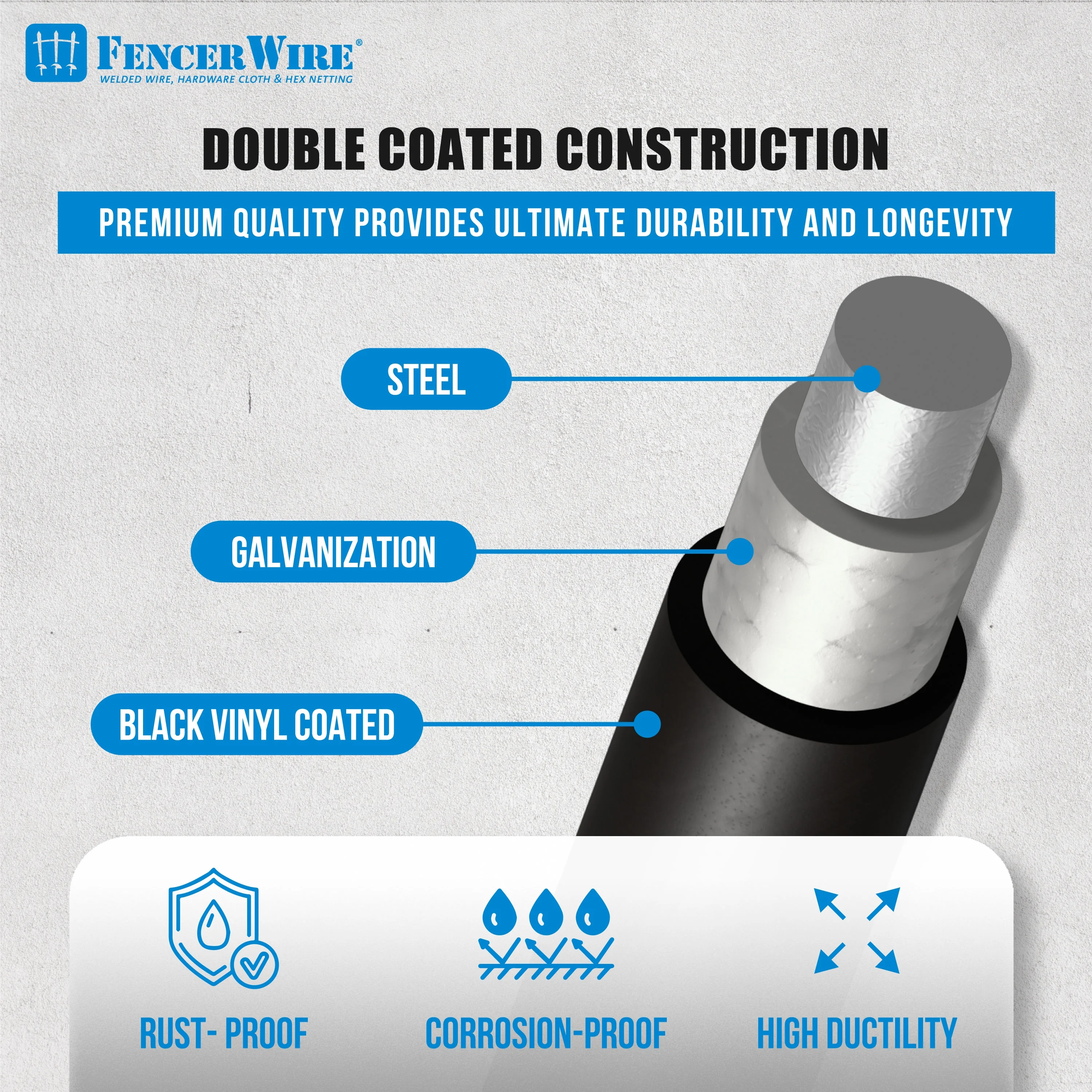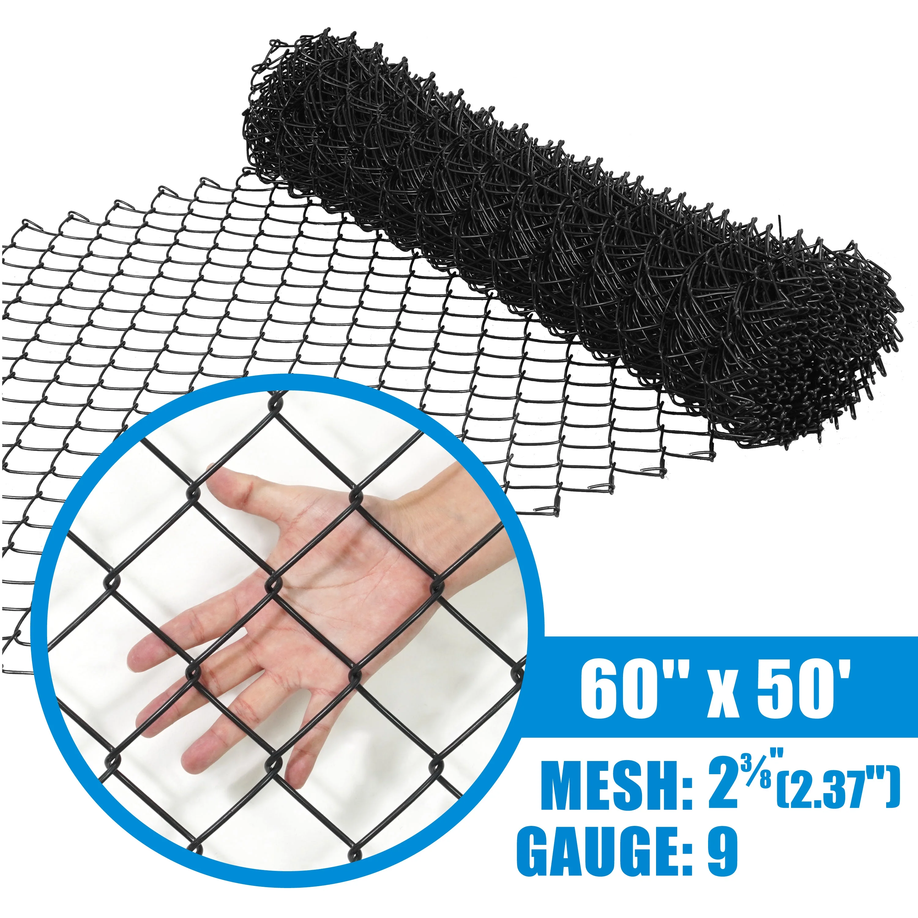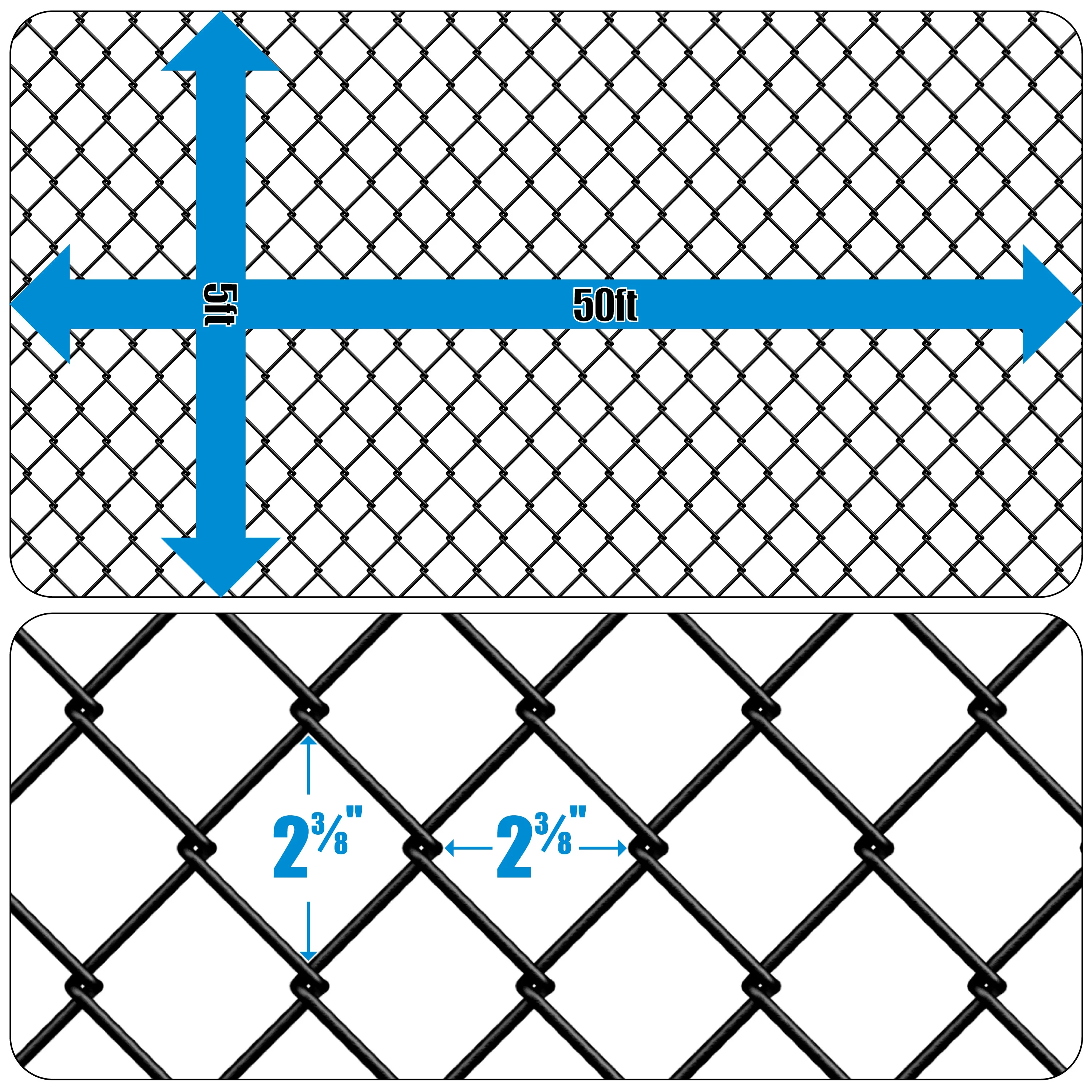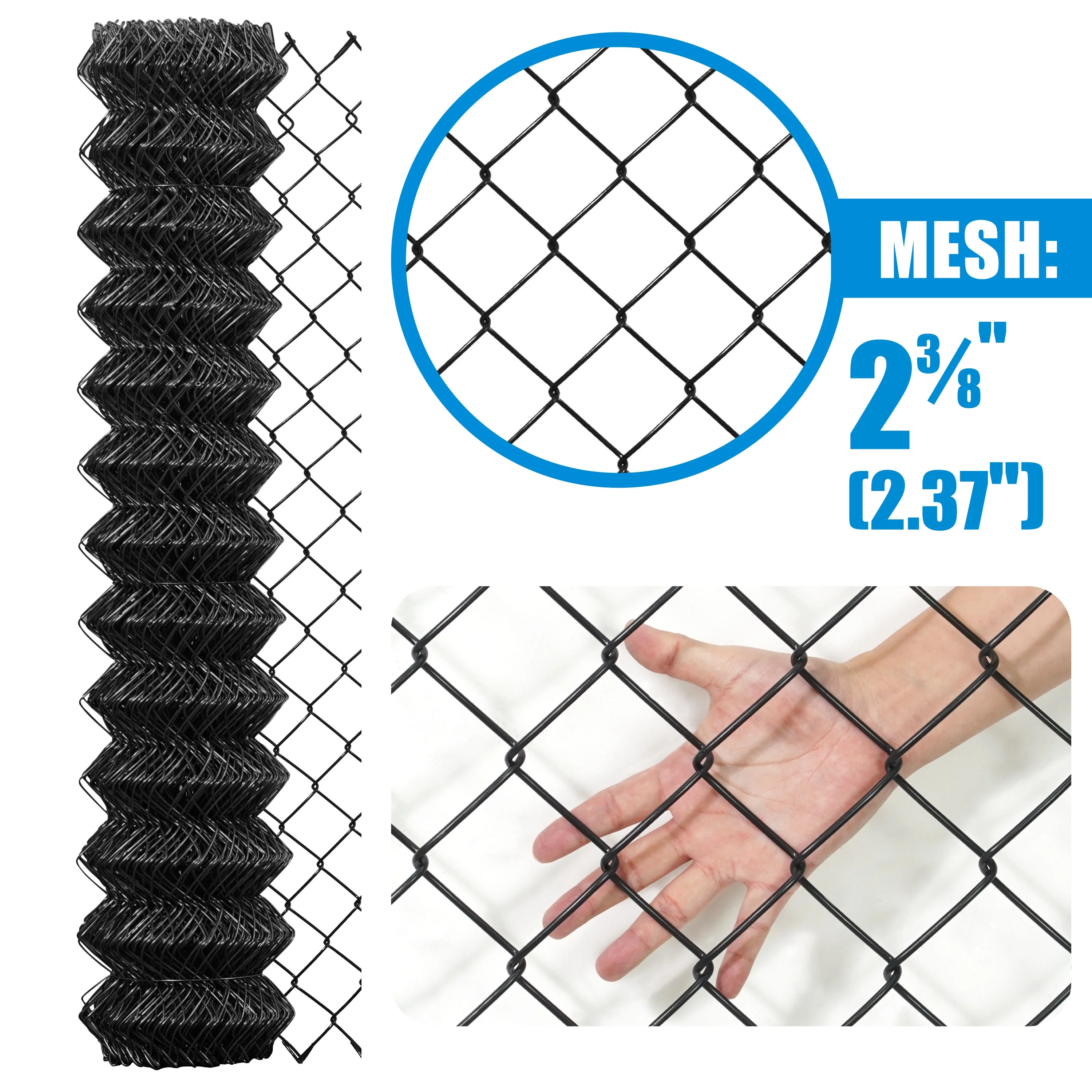 - Sturdy Construction: Built to withstand harsh weather conditions, this chain link fence wire netting is crafted from 9-gauge black vinyl-coated galvanized steel, providing exceptional rust resistance and long-lasting durability. The design minimizes sharp edges or burrs, ensuring a sturdy and weather-resistant construction ideal for extended use.