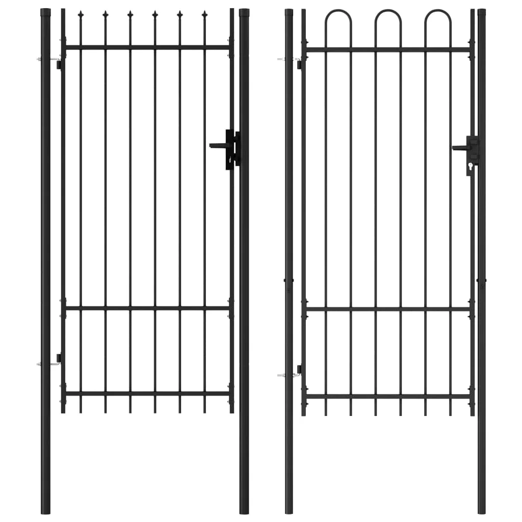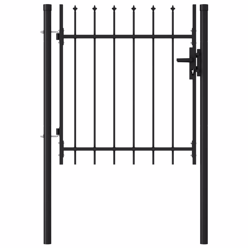 With vertical bars topped with spike ends and strong horizontal brace as the reinforcement, our garden gate will provide a high degree of privacy and security, while forming a fabulous entryway to your property. Manufactured from heavy-duty steel, the gate is powder-coated to protect against rust and corrosion.