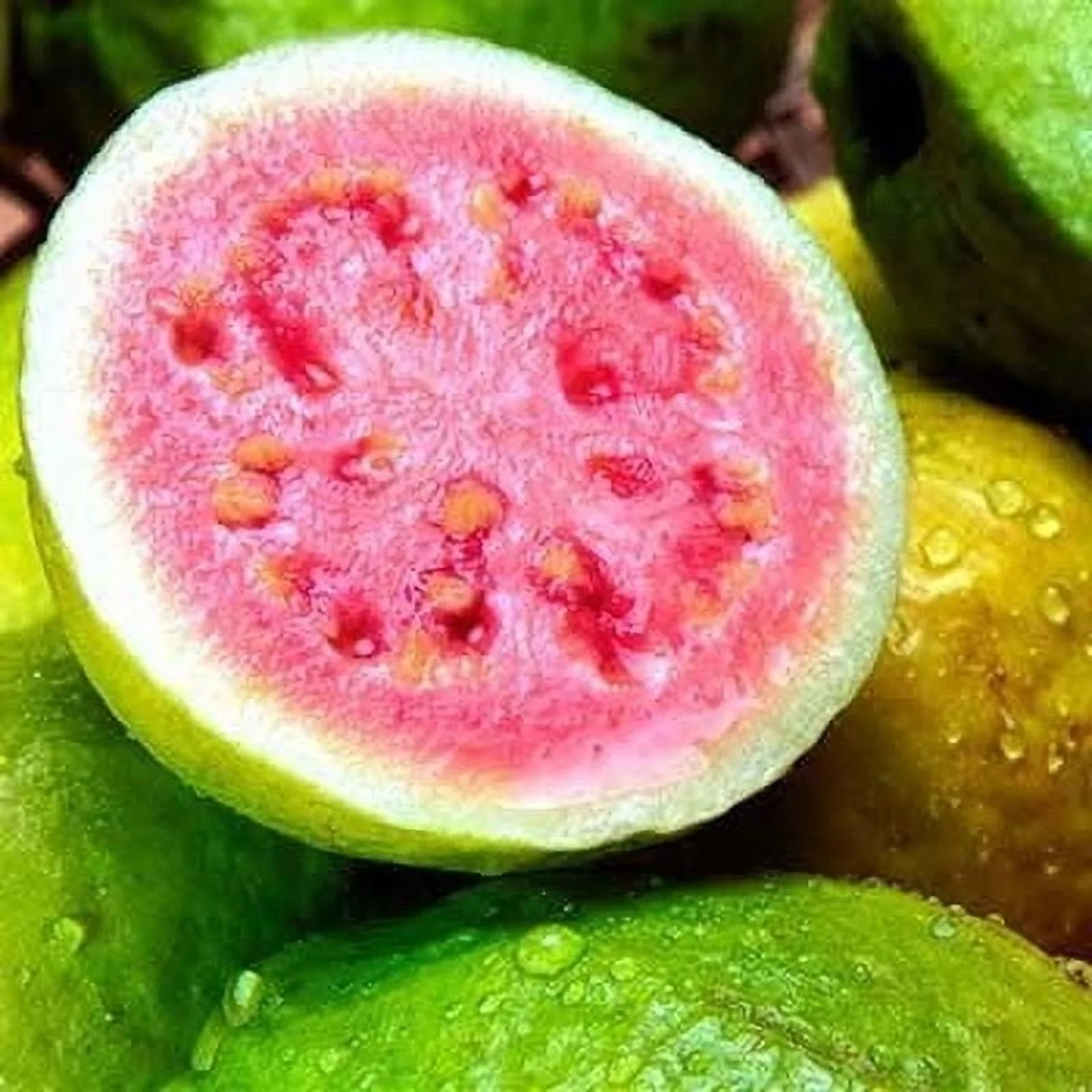 Grow Delicious Tropical Fruit Easily Grown Indoors or Out - Depending on Your Zone Guava trees can grow outdoors or indoors in colder areas. Just bring your potted tree indoors for the winter. It makes a great houseplant. The guava is self-pollinating. Like most self-pollinating fruit trees, you will get even more production with a second one - in order to cross-pollinate. Delicious Fruit The guava fruit is round to pear-shaped and can grow between 2-4 inches long. When ripe, the rind softens and is edible. The inner flesh is ruby in color and has a soft, pulpy texture. The fruit has a sweet flavor and a pleasant aroma. In warmer climates, the fruit will ripen year-round. A mature Guava tree can produce 40 - 70 lbs of fruit per year. Even a patio tree kept at 4-6 ft can give you plenty to enjoy and share. Easy Growing This tree is drought tolerant but will produce more fruit if watered regularly. It will easily adapt to most soil conditions and enjoys full sunlight. Guava trees love organic fertilizer and will use it to grow even quicker and fruit even heavier. Why Our Guava Trees are Superior You'll get fruit the 1st year - not the 8th. Some nurseries send Guava trees with the dirt washed off the roots. This is not healthy for tropical plants. That's why your tree arrives in a large container with a full, vibrant root system intact. It's ready to explode with new development. Plus your tree has been pruned throughout its life, not just when we ship it. Some nurseries advertise a tall height, then cut 1/3 off, in order to save on their shipping cost. You should get what you pay for. That includes a tree that will give you the best and quickest fruit possible, as well as a lifetime of enjoyment. Order Now Your Guava Tree is non-GMO; can easily be grown organically, and has the best flavor and texture available. Order now for fast delivery.