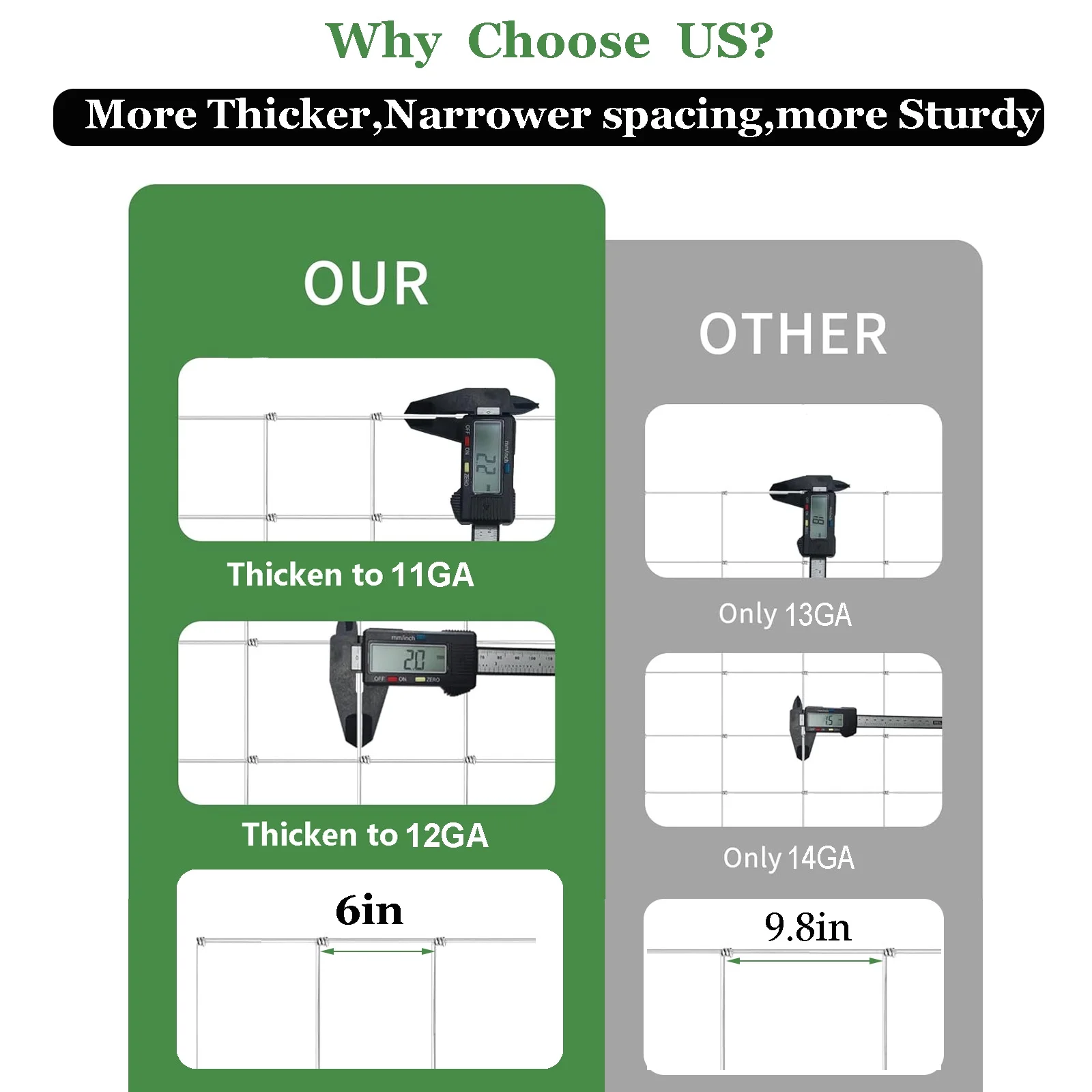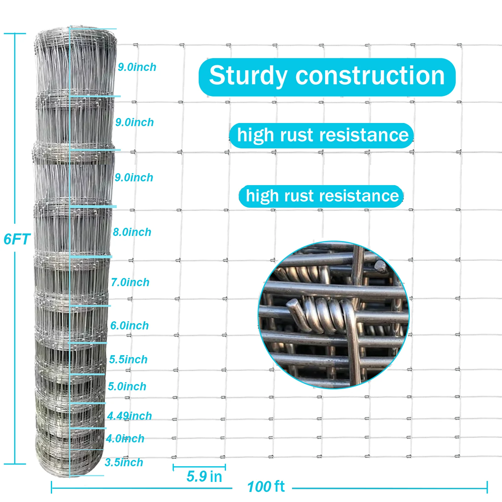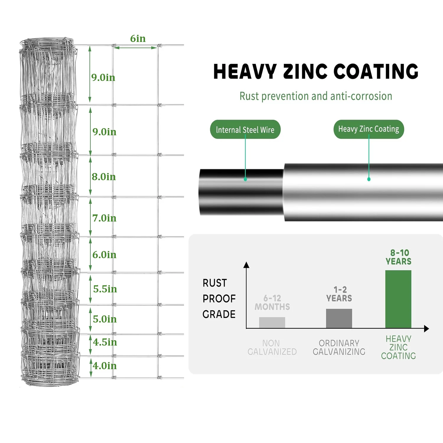 - Scientific Design -The bottom and upper have different opening mesh sizes.The Openings of fencing mesh get smaller toward the bottom to prevent rabbits, dogs, cats, chickens, foxes and other small animals to enter your farm,field or garden.