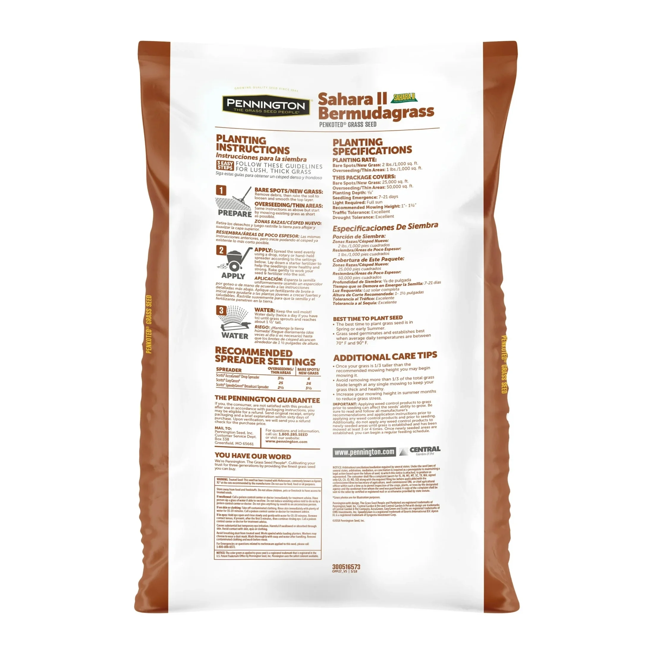 - Pennington Sahara II Bermudagrass Penkoted Grass Seed 25 lb, Full Sun, Heat Tolerant, Quick Grow