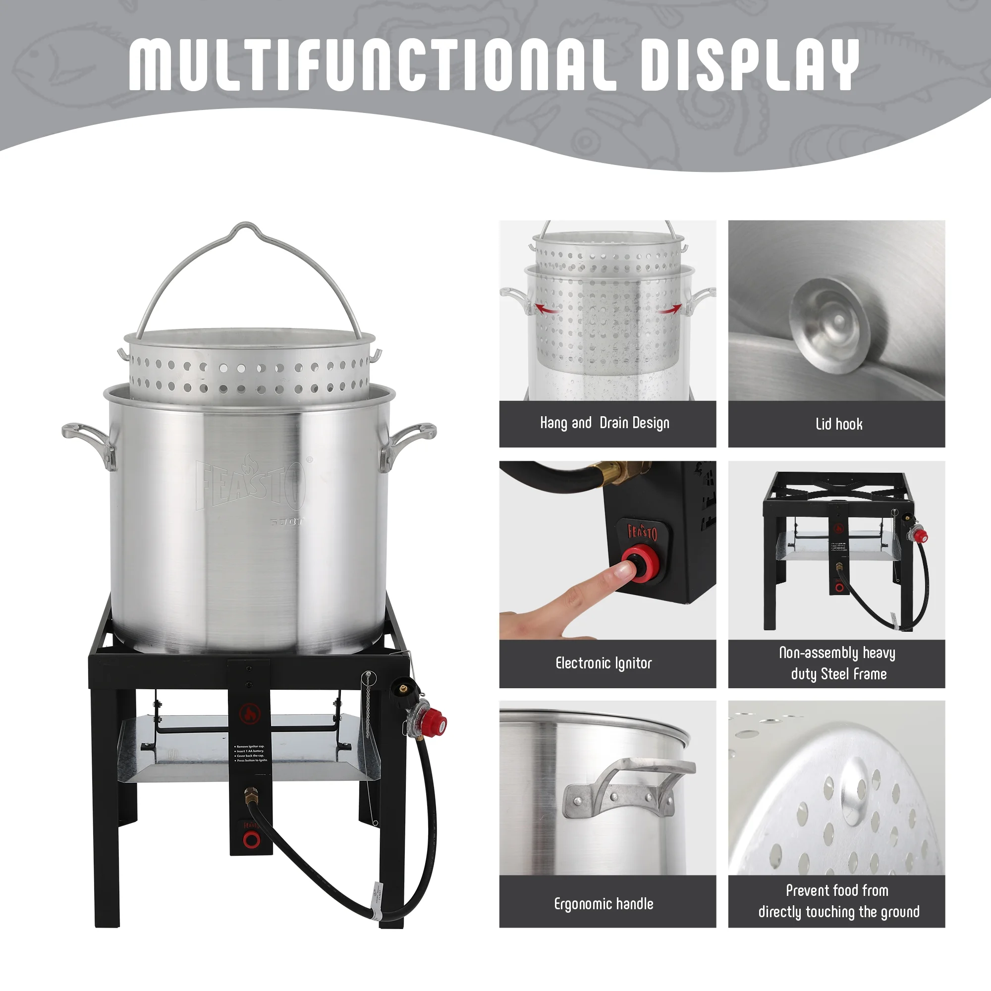 - Capacity: 80QT prepares a party gathering food in one pot conveniently, suitable for both vegetables and seafood