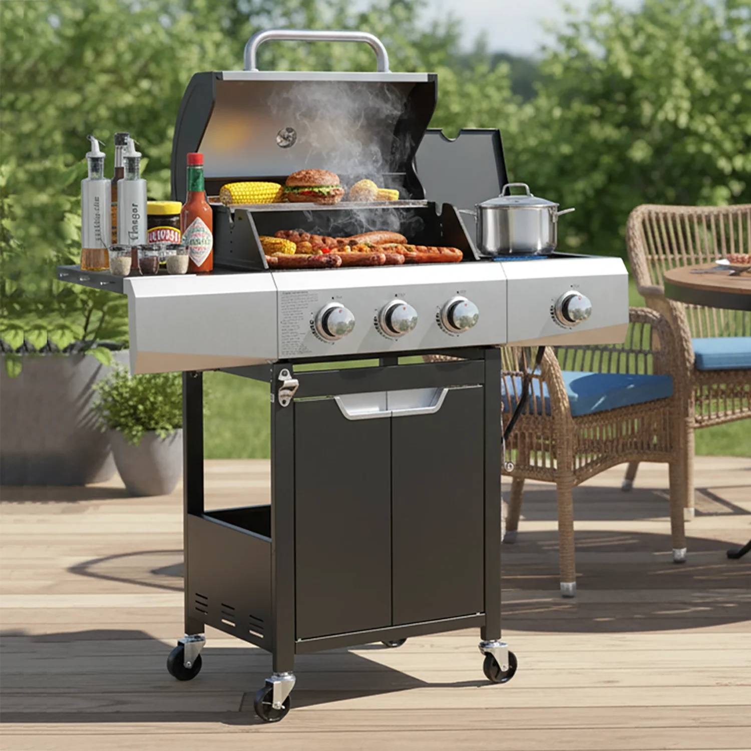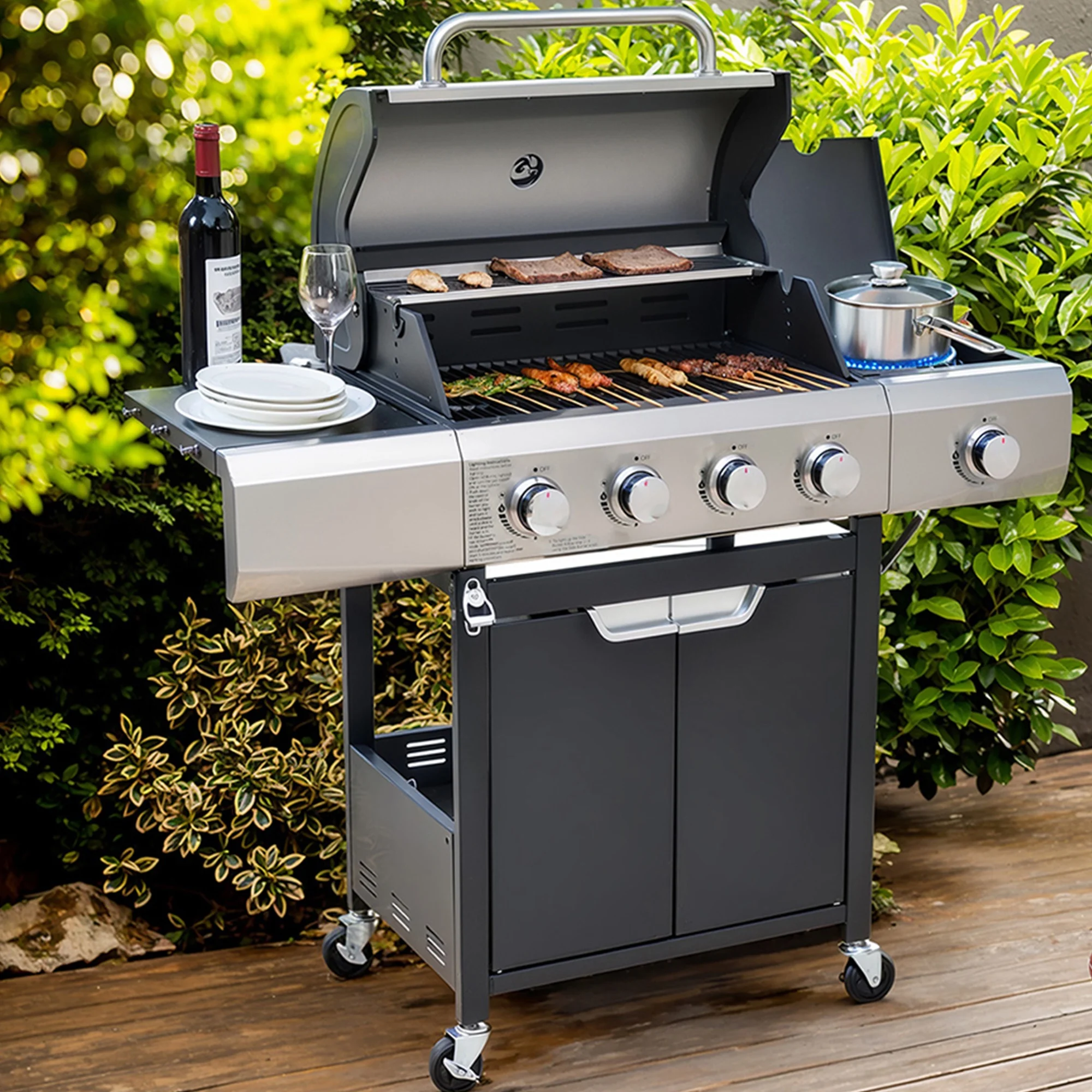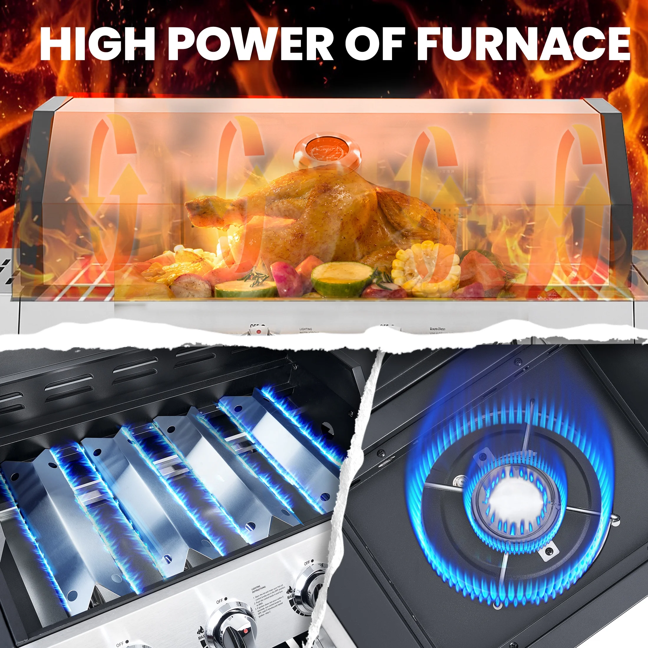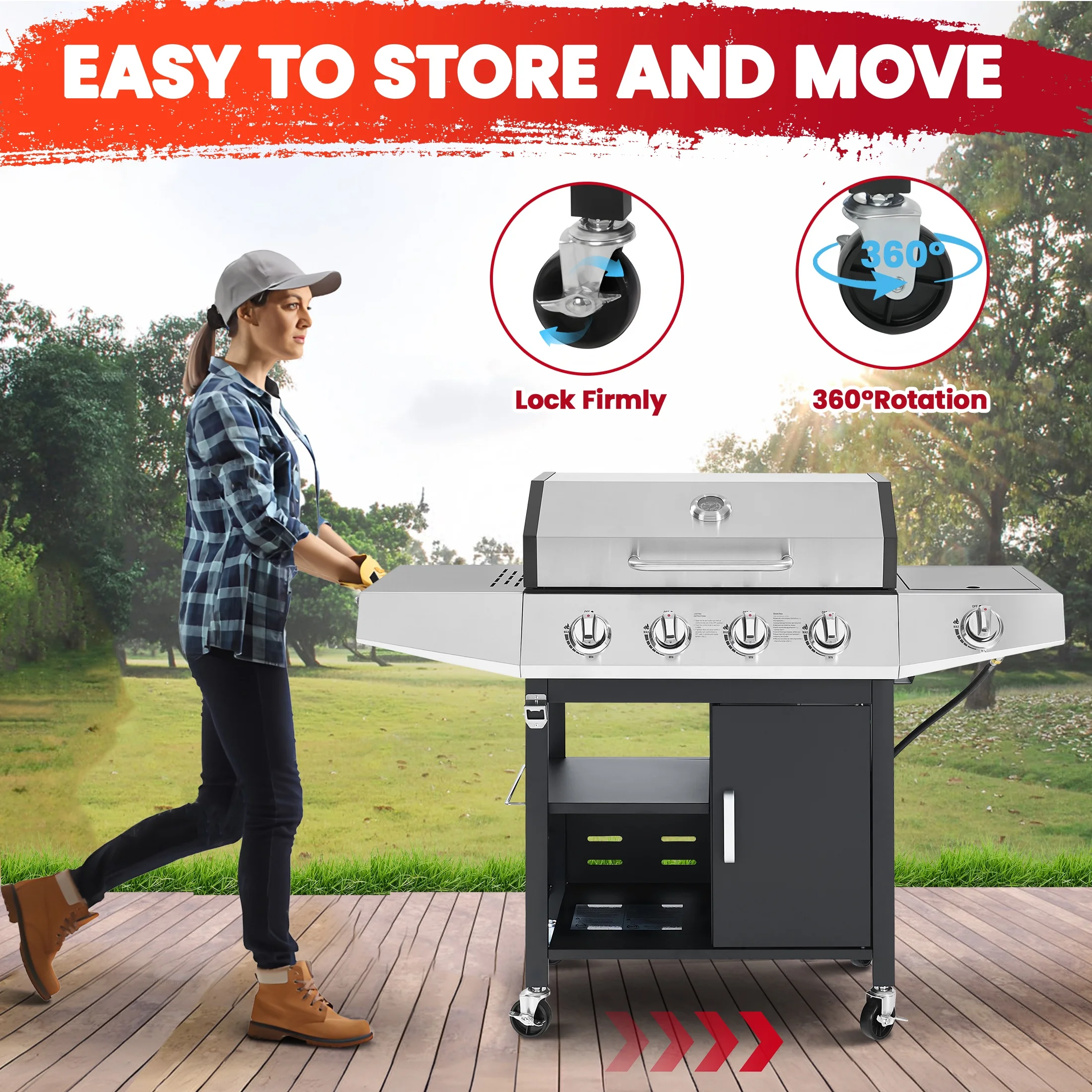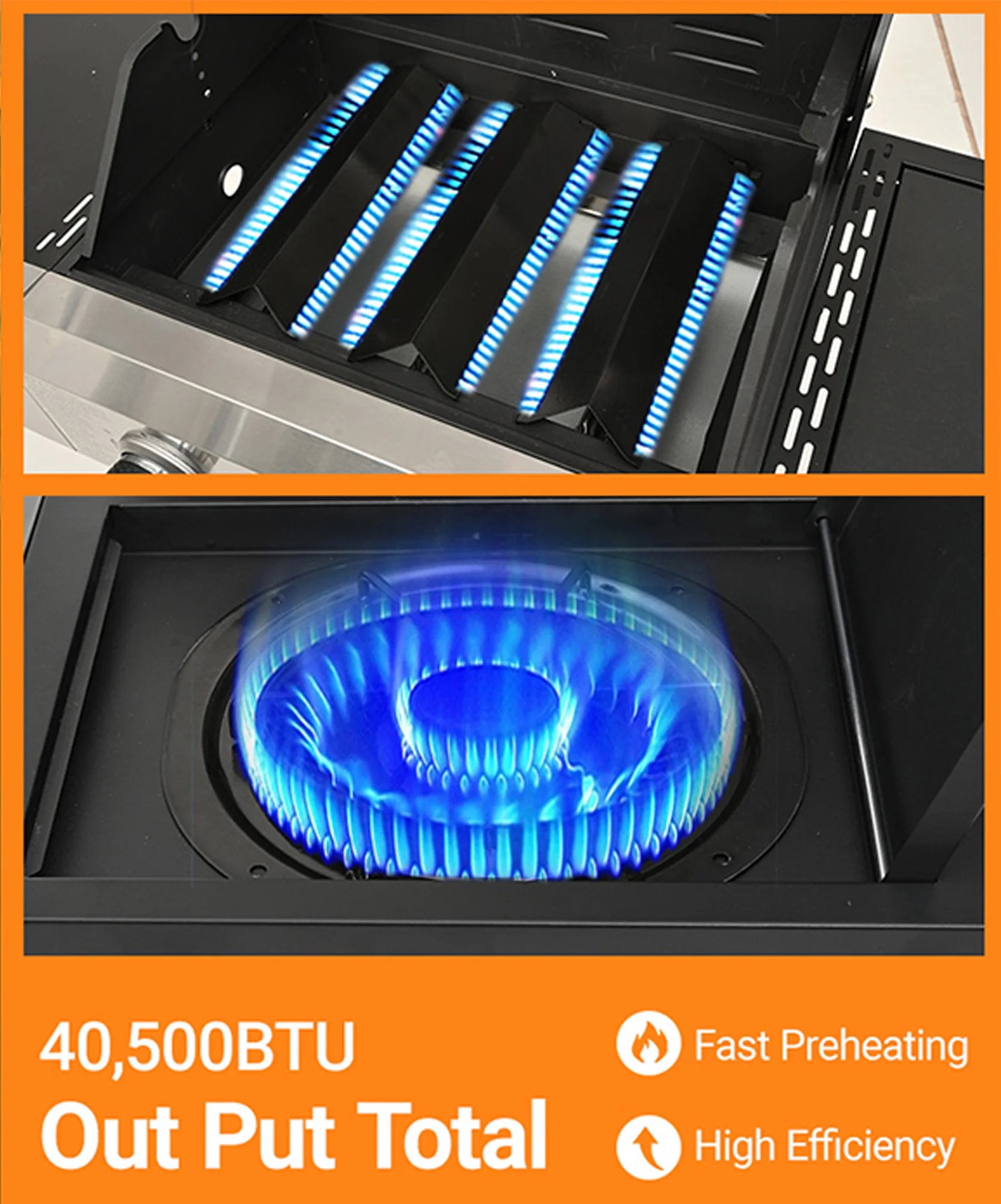 - ??[Stainless Steel Construction]: The high-quality stainless steel is massively applied to the durable double-layer lid, cooking grates, flame tamers, burners and cabinet doors, which are built-to-last for long-time use.